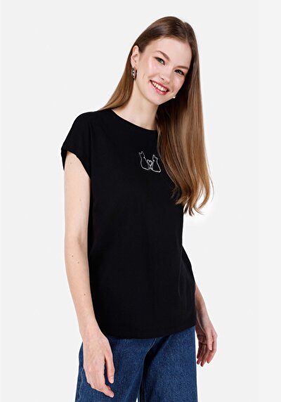 على شكل V رقبة مستقيم نسائي أسود كم قصير تي شيرت