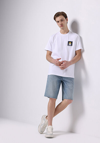 قميص مريح رقبة مستقيم رجالي كتان ممزوج أبيض كم طويل قميص