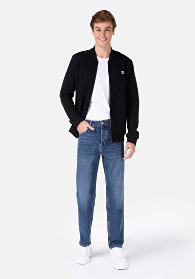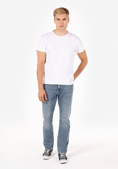 مستقيم خصر منخفض مستقيم الساق الجينز النيلي المفتوح للرجال