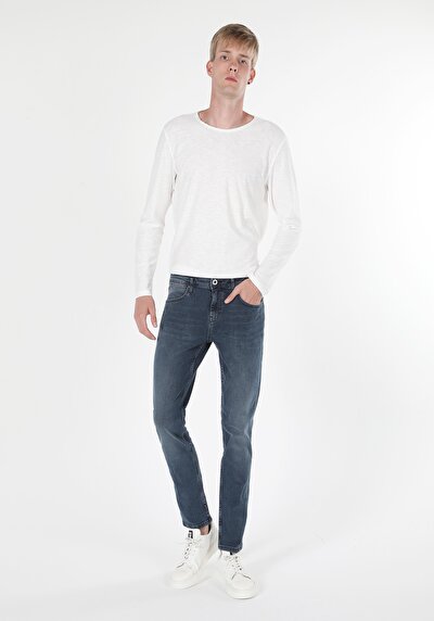 كومفورت فيت خصر متوسط ساق مستقيمة بنطلون رجالي أزرق داكن