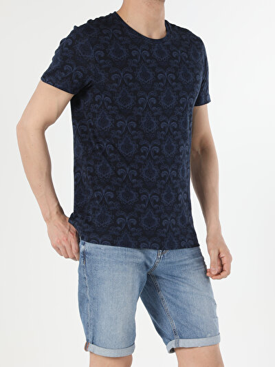 ضيق قصة على شكل حرف V رقبة مستقيمة رجالي أزرق كحلي كم قصير تي شيرت