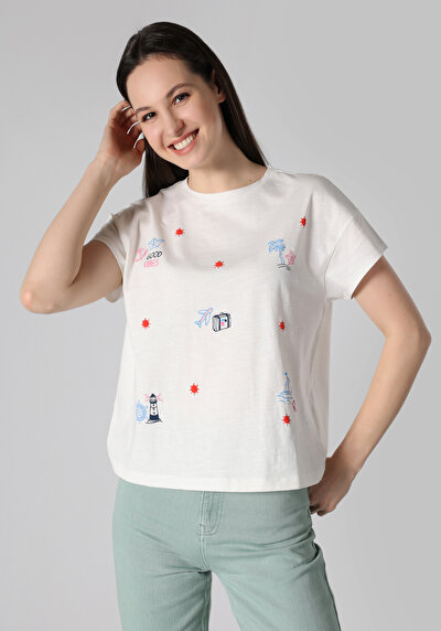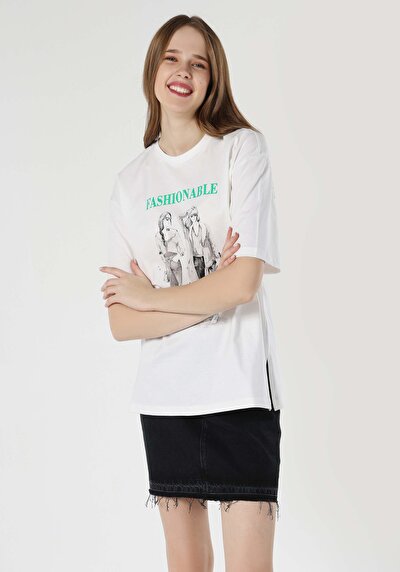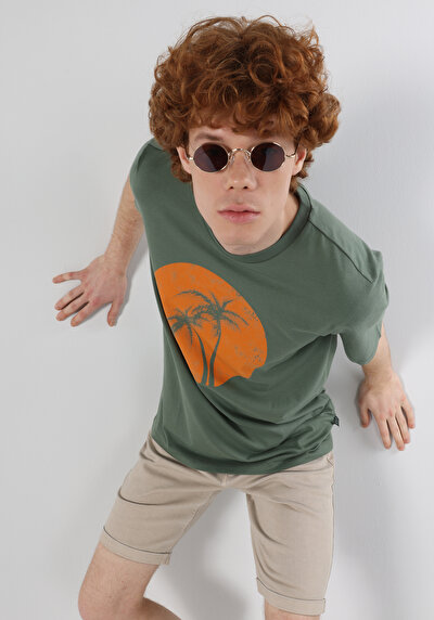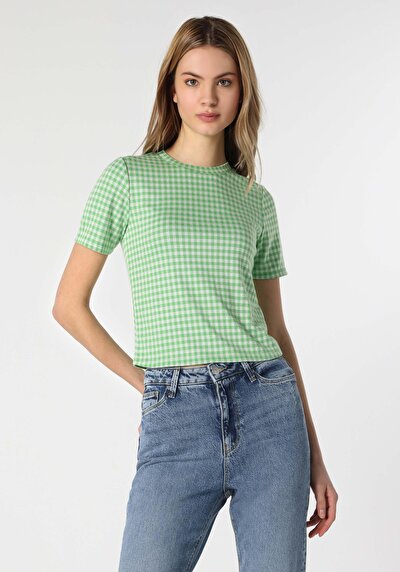 تي شيرت اخضر نسائي بأكمام قصيرة Cl1063339 Slim Fit Squared