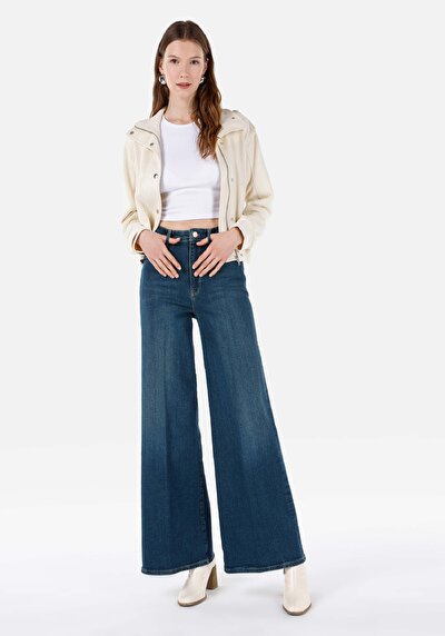 ارتفاع الخصر ساق واسعة نسائي بنطلون أخضر