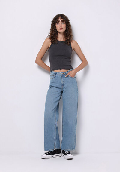 مستقيم خصر منخفض مستقيم الساق الجينز النيلي المفتوح للرجال