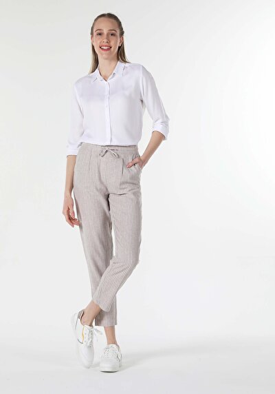 قميص نسائي بأكمام طويلة مخطط مطبوع باللون الأبيض مقاس عادي Cl1062114