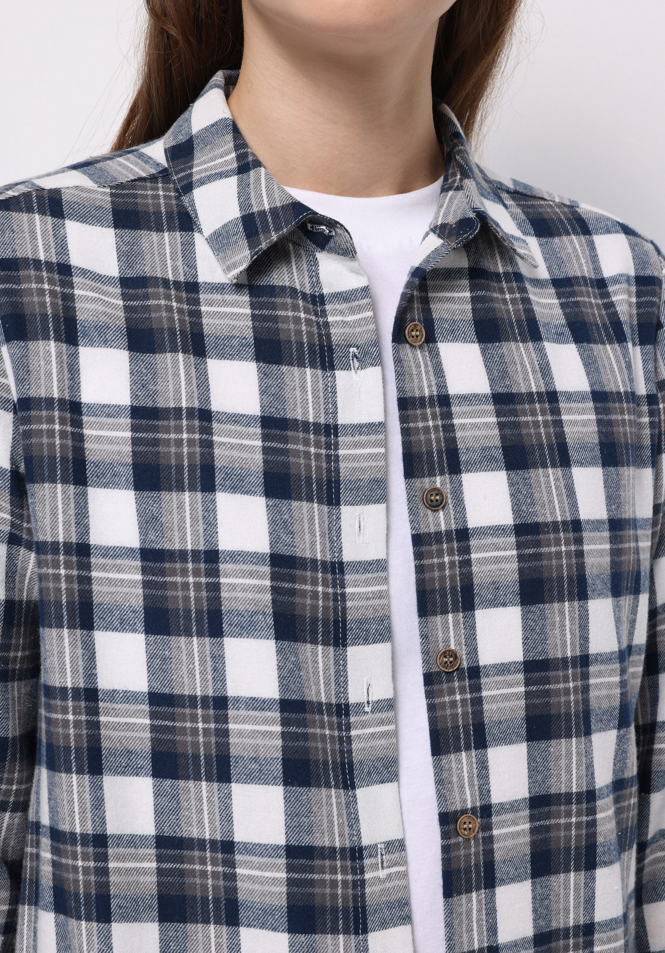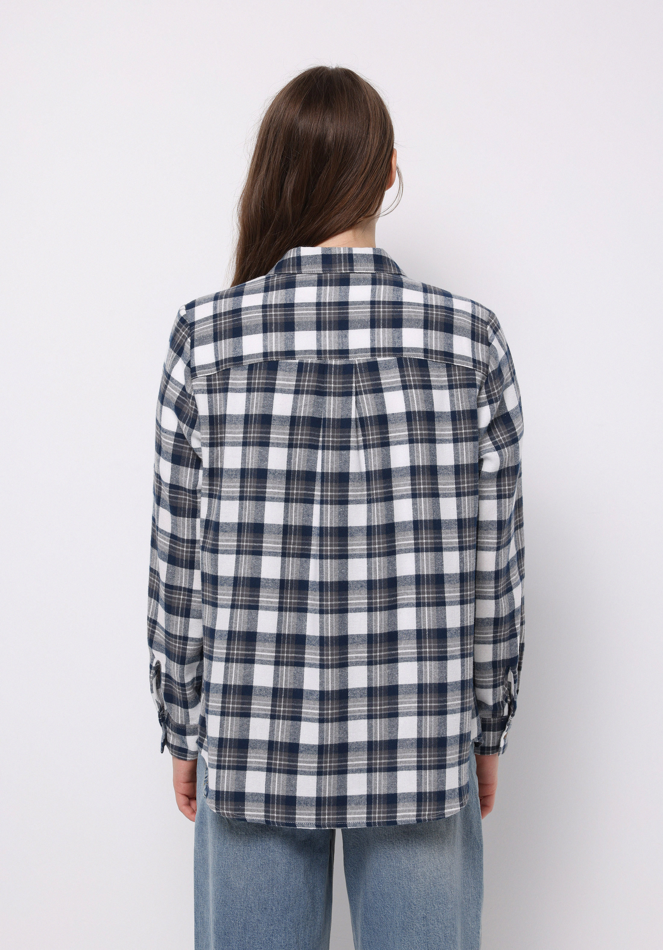 اعرض التفاصيل لـ قميص عادي رقبة منقوشة نسائي أزرق كم طويل قميص