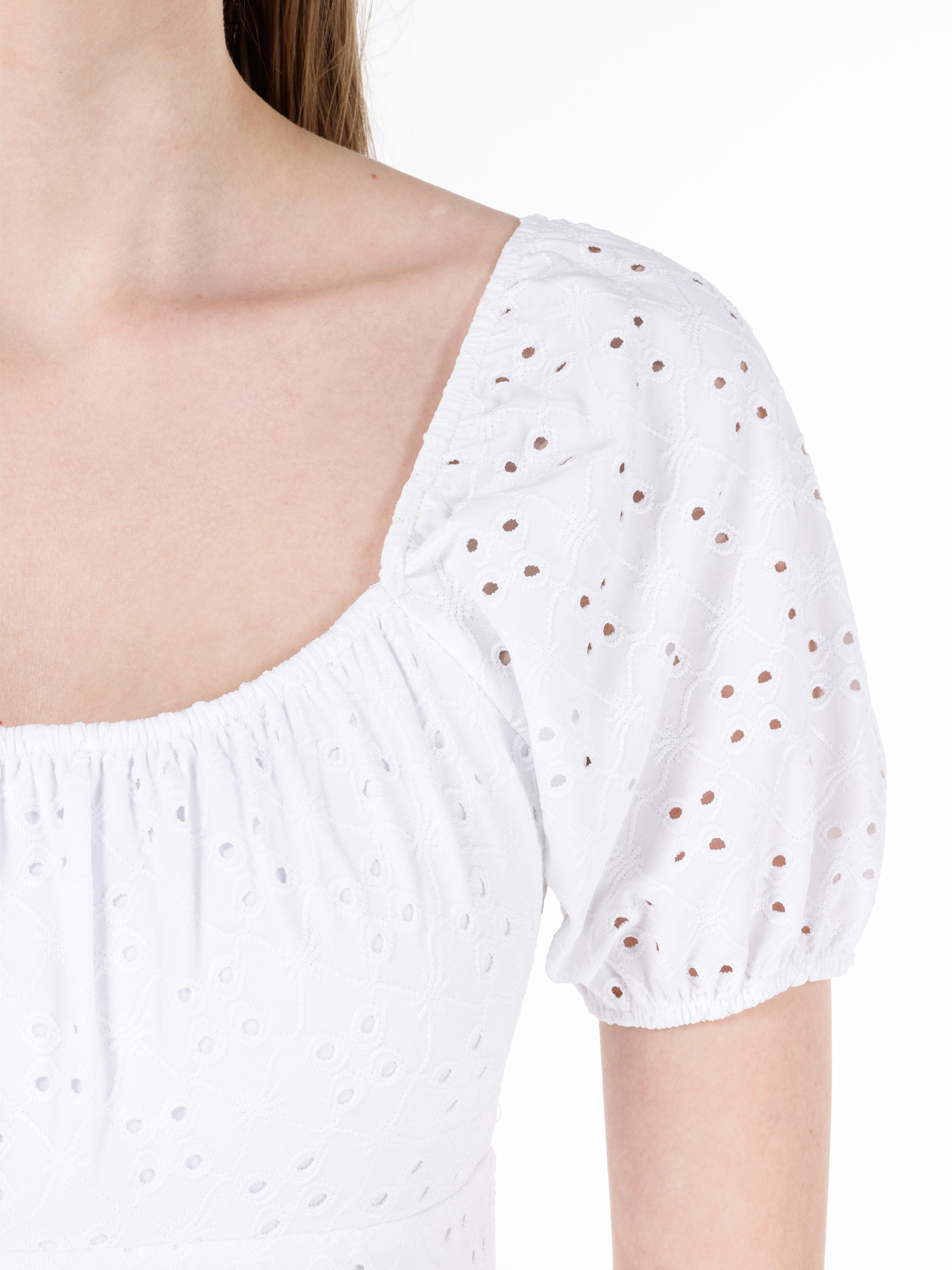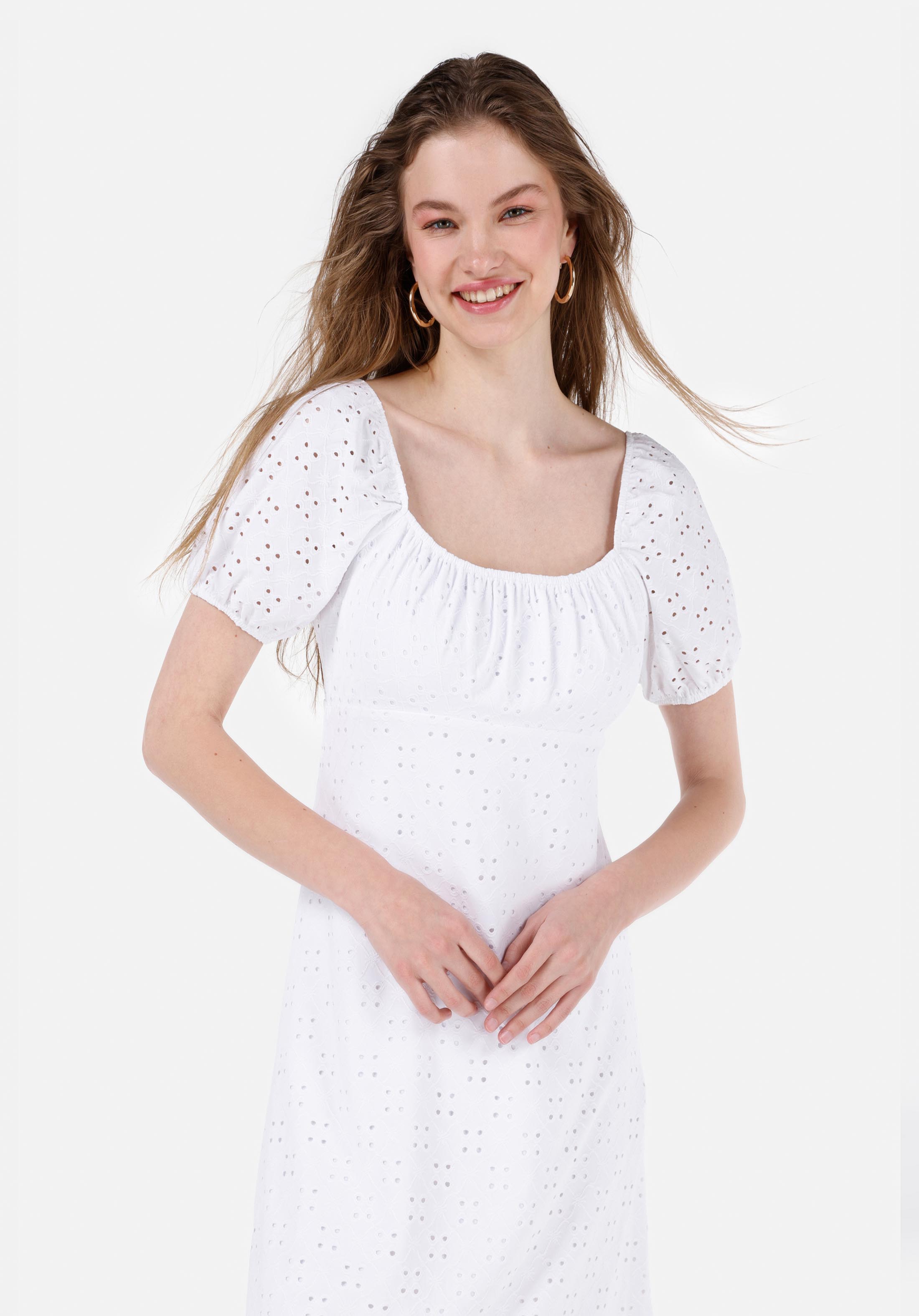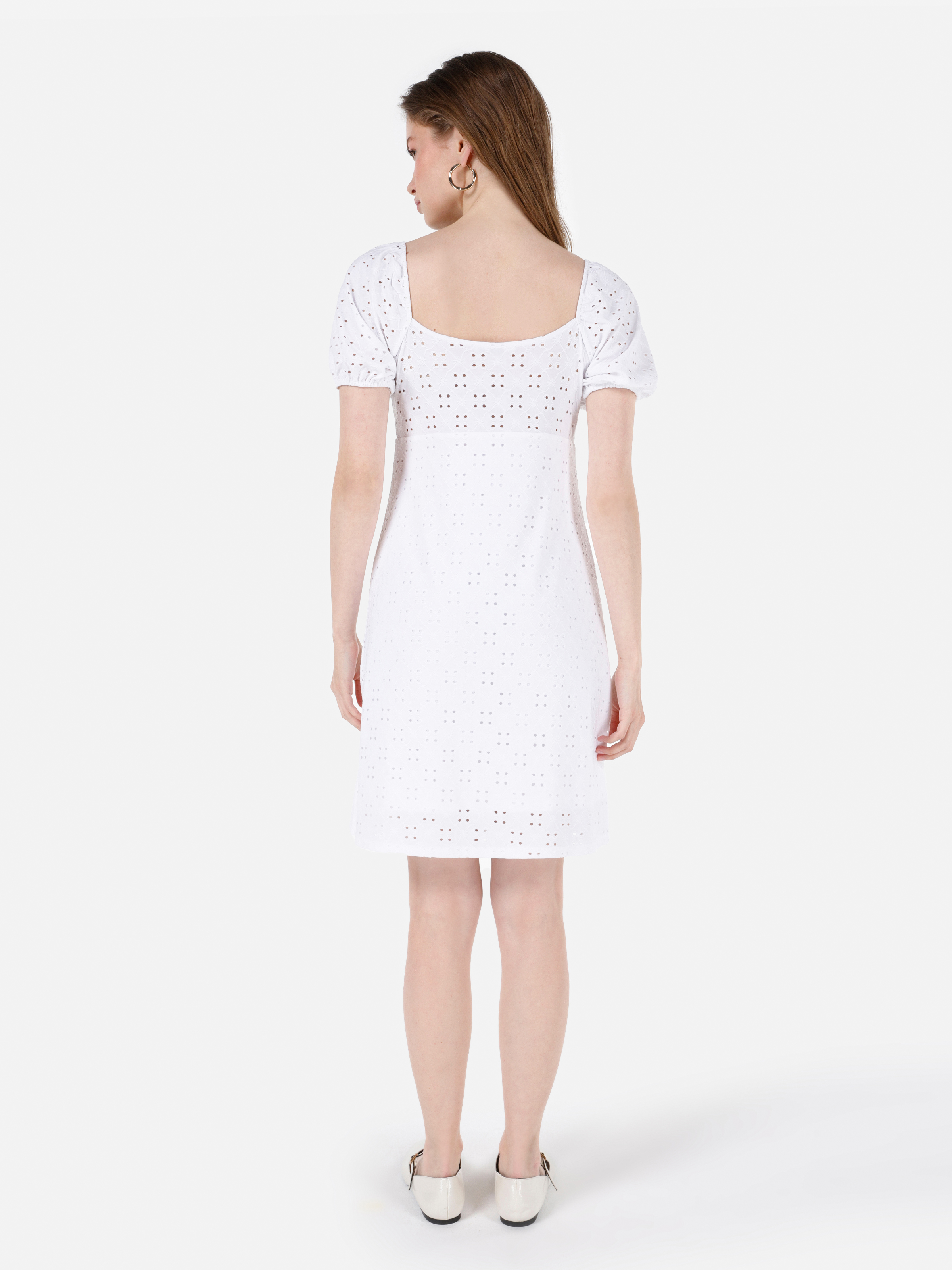 مستقيم فستان نسائي أبيض بأكمام قصيرة