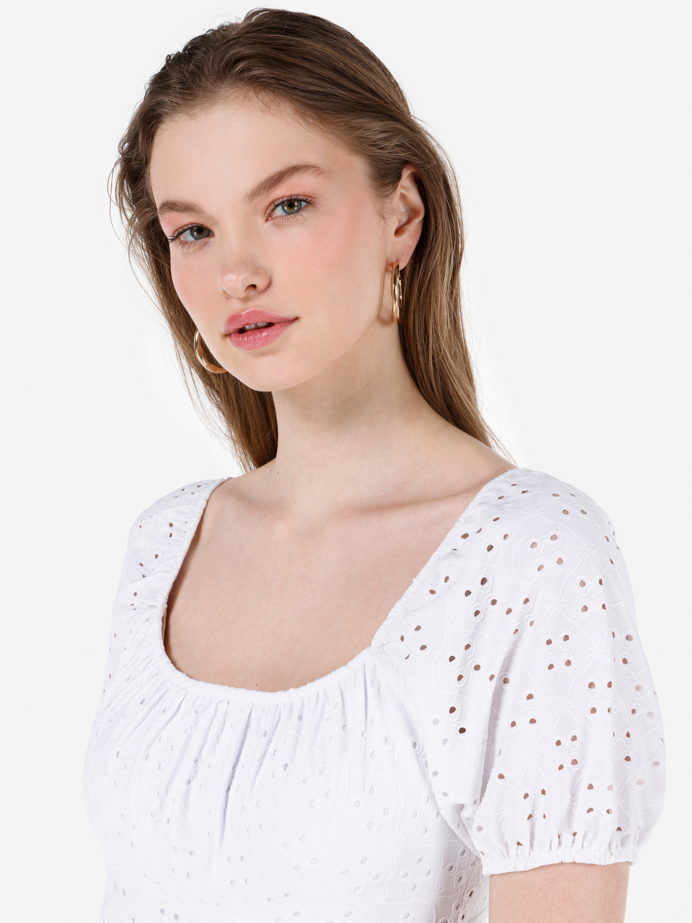 اعرض التفاصيل لـ   مستقيم فستان نسائي أبيض بأكمام قصيرة