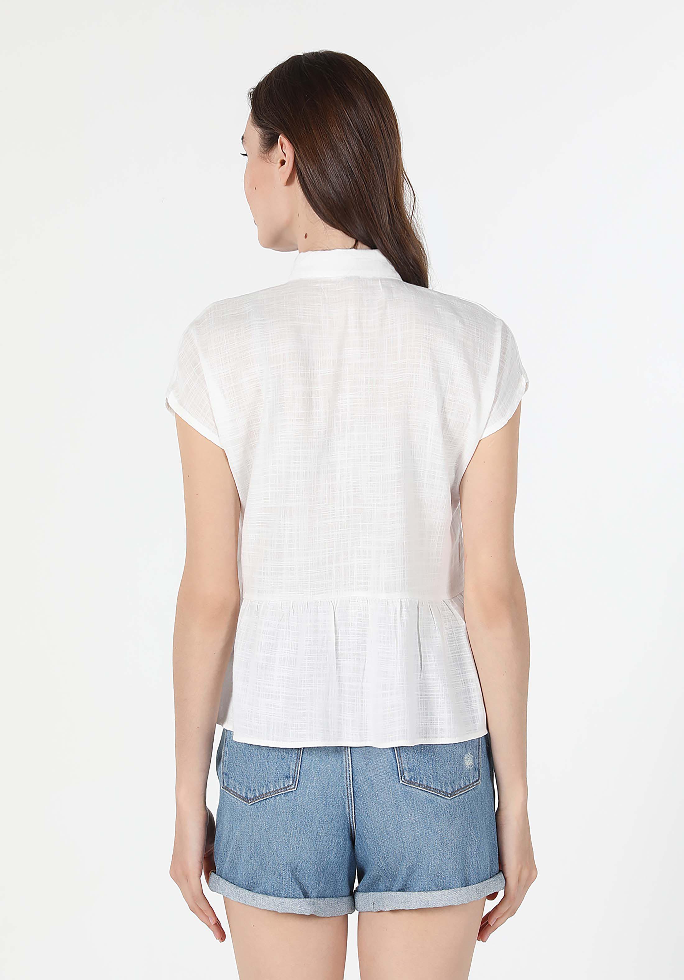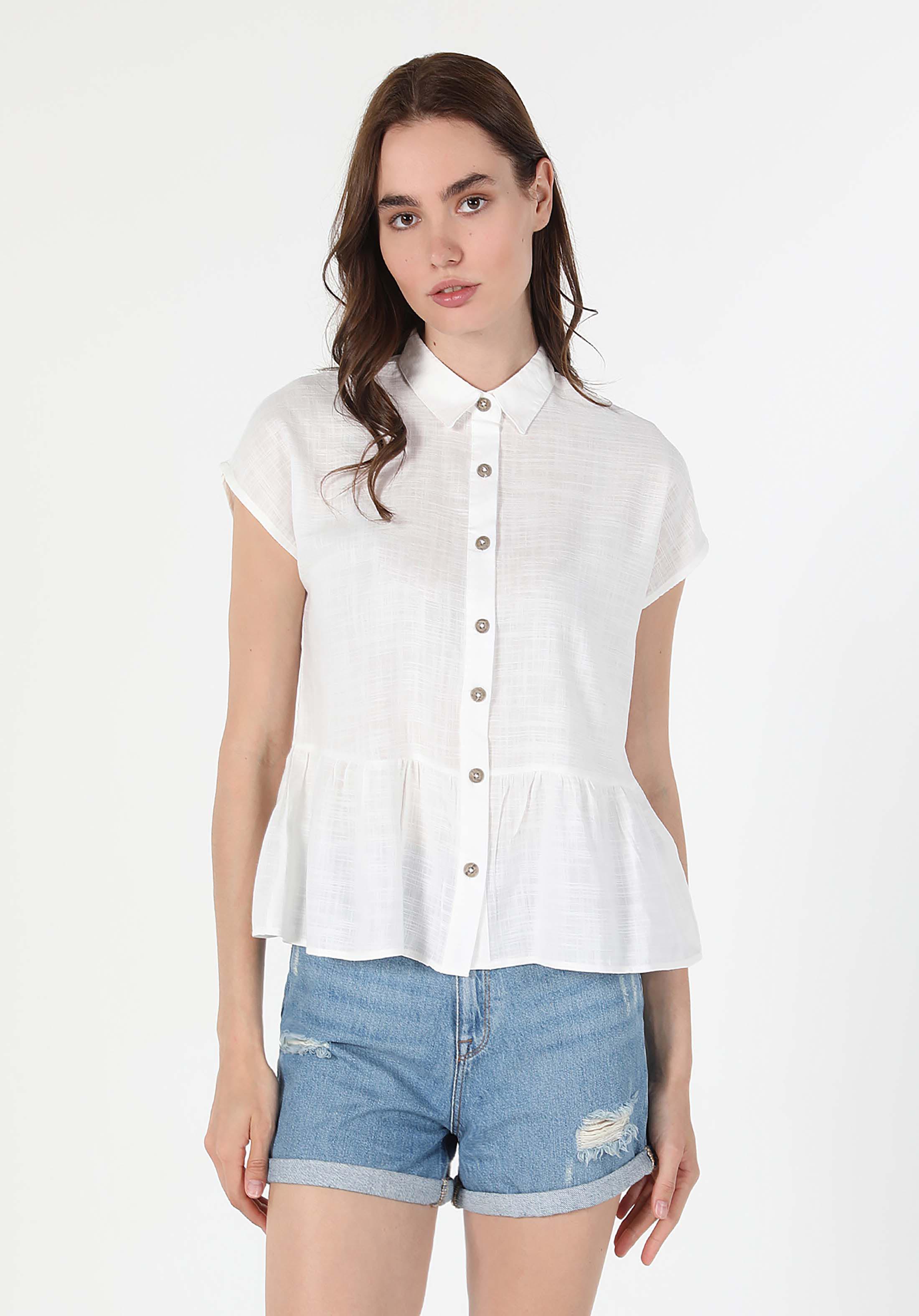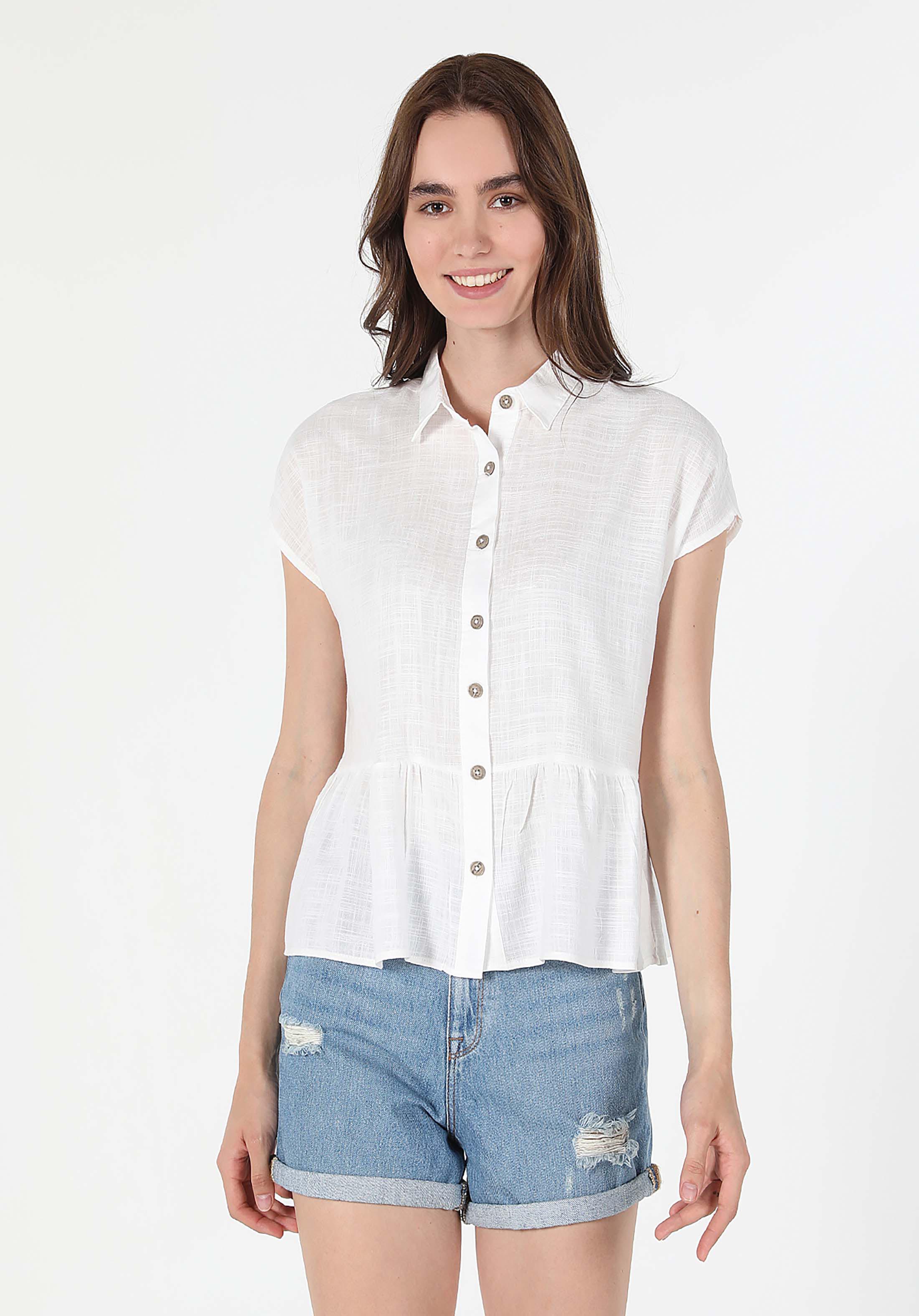 أبيض للنساء قميص كم قصير