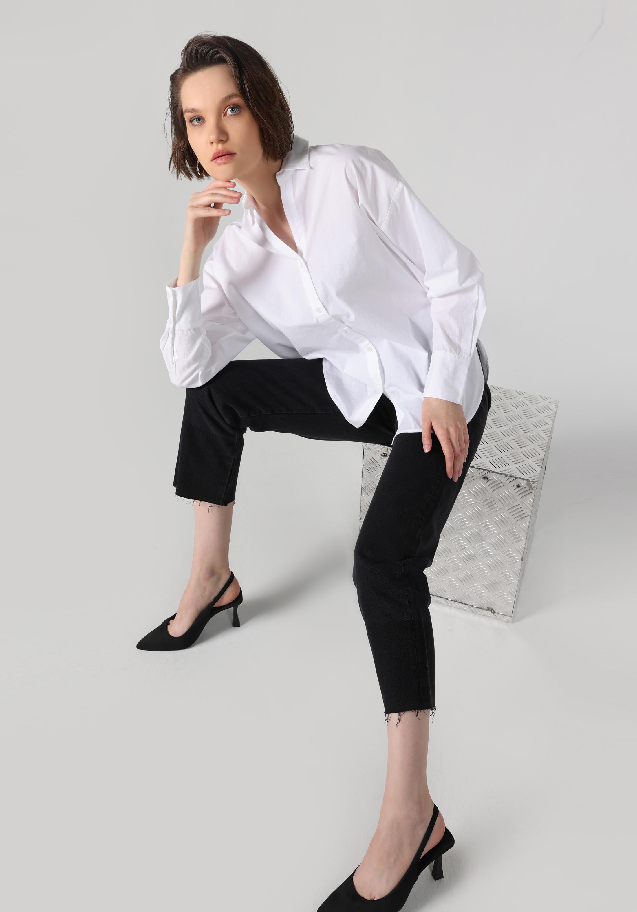 اعرض التفاصيل لـ أبيض للنساء قميص  كم طويل