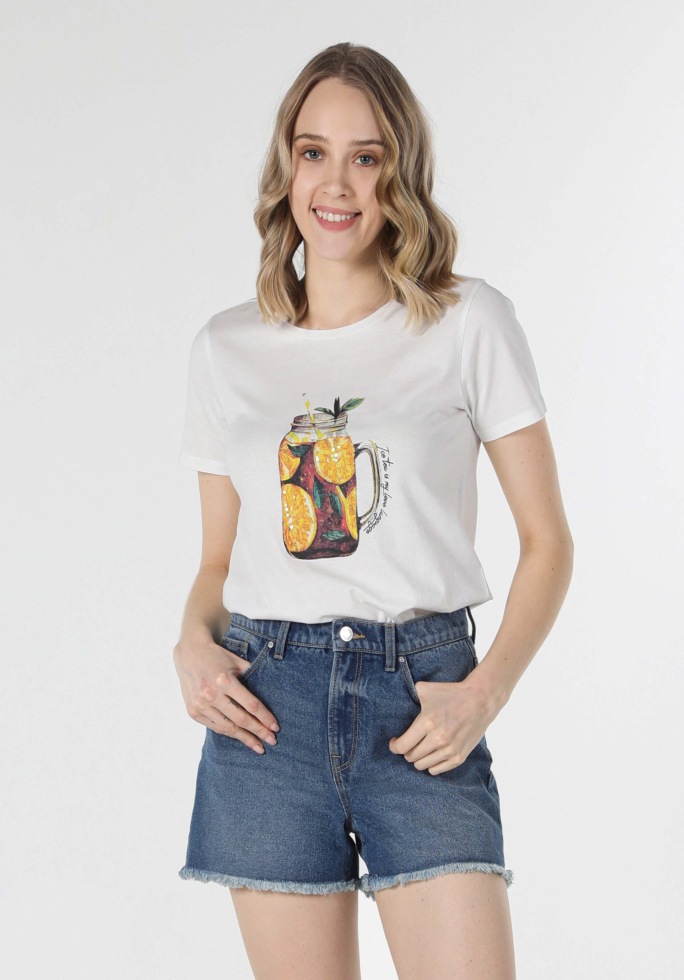 اعرض التفاصيل لـ أبيض للنساء تي شيرت كم طويل