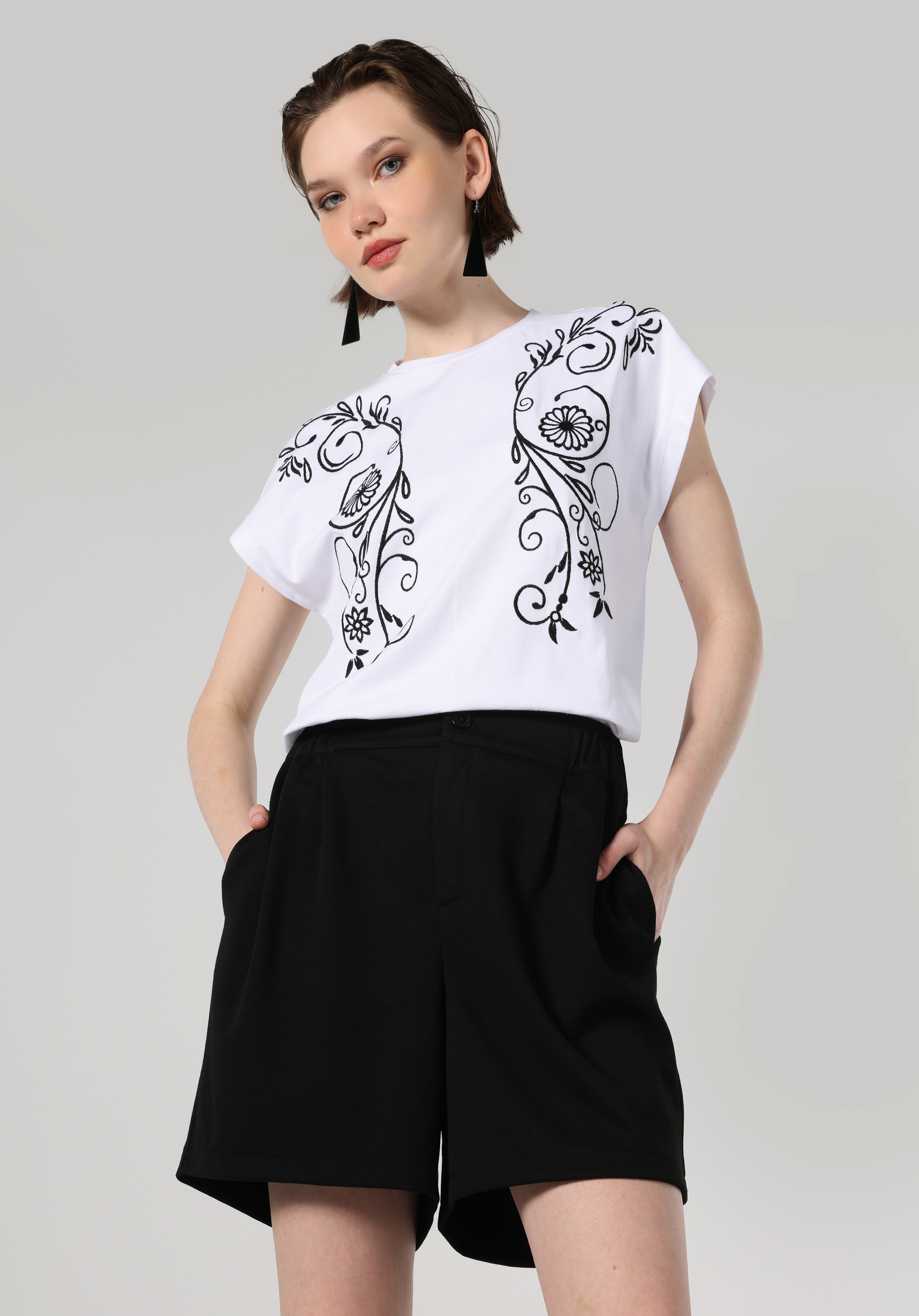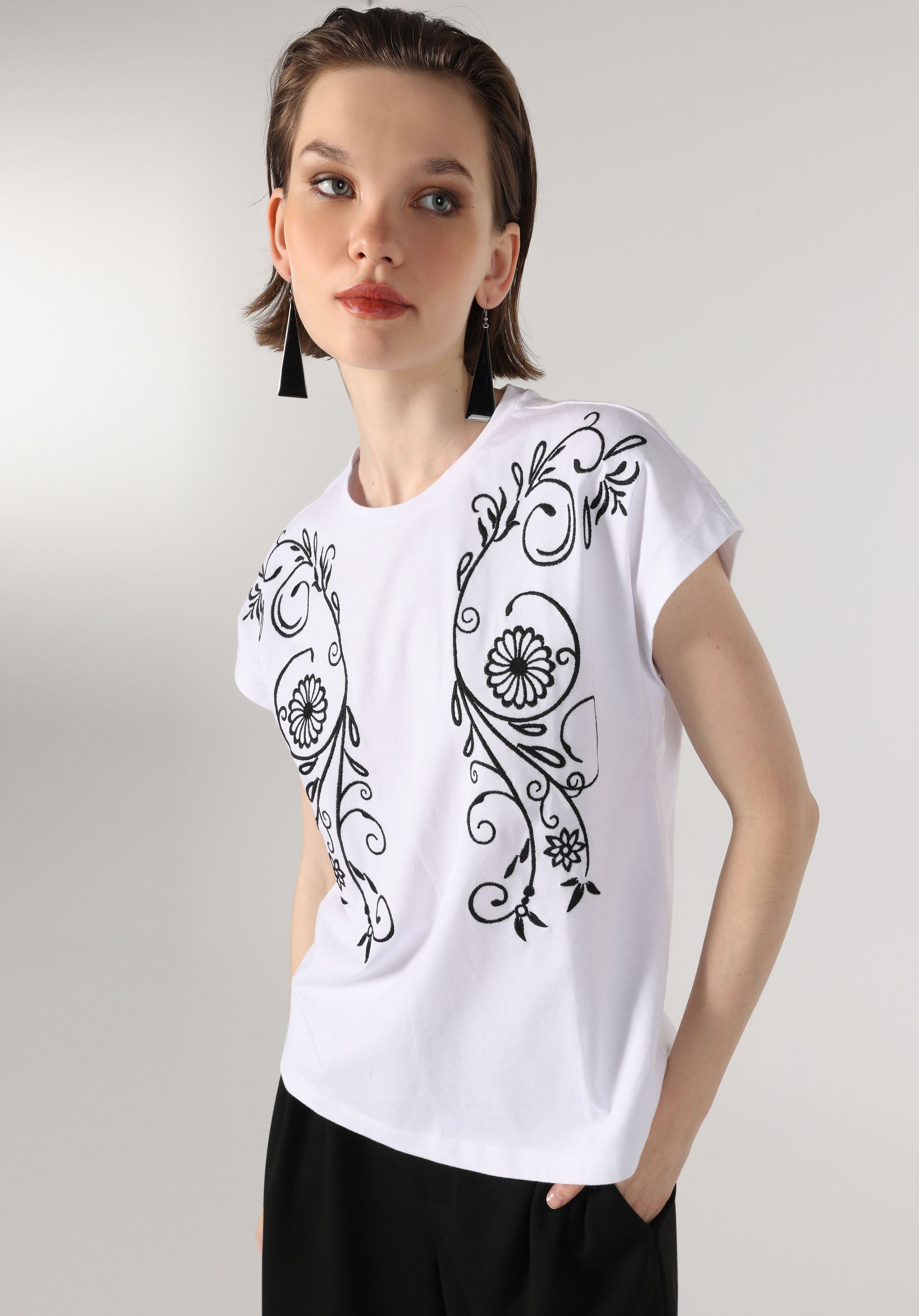 اعرض التفاصيل لـ أبيض للنساء تي شيرت كم طويل