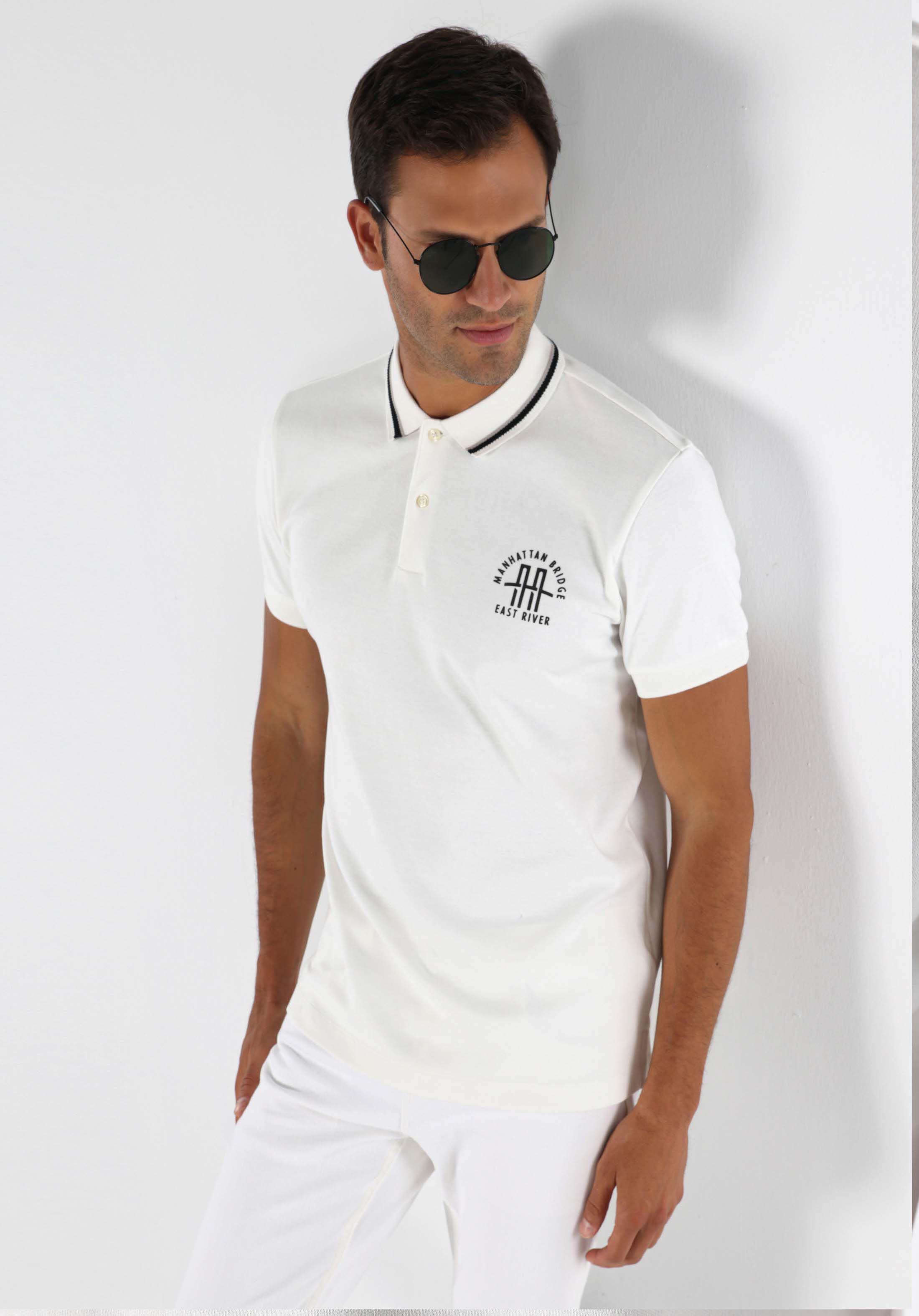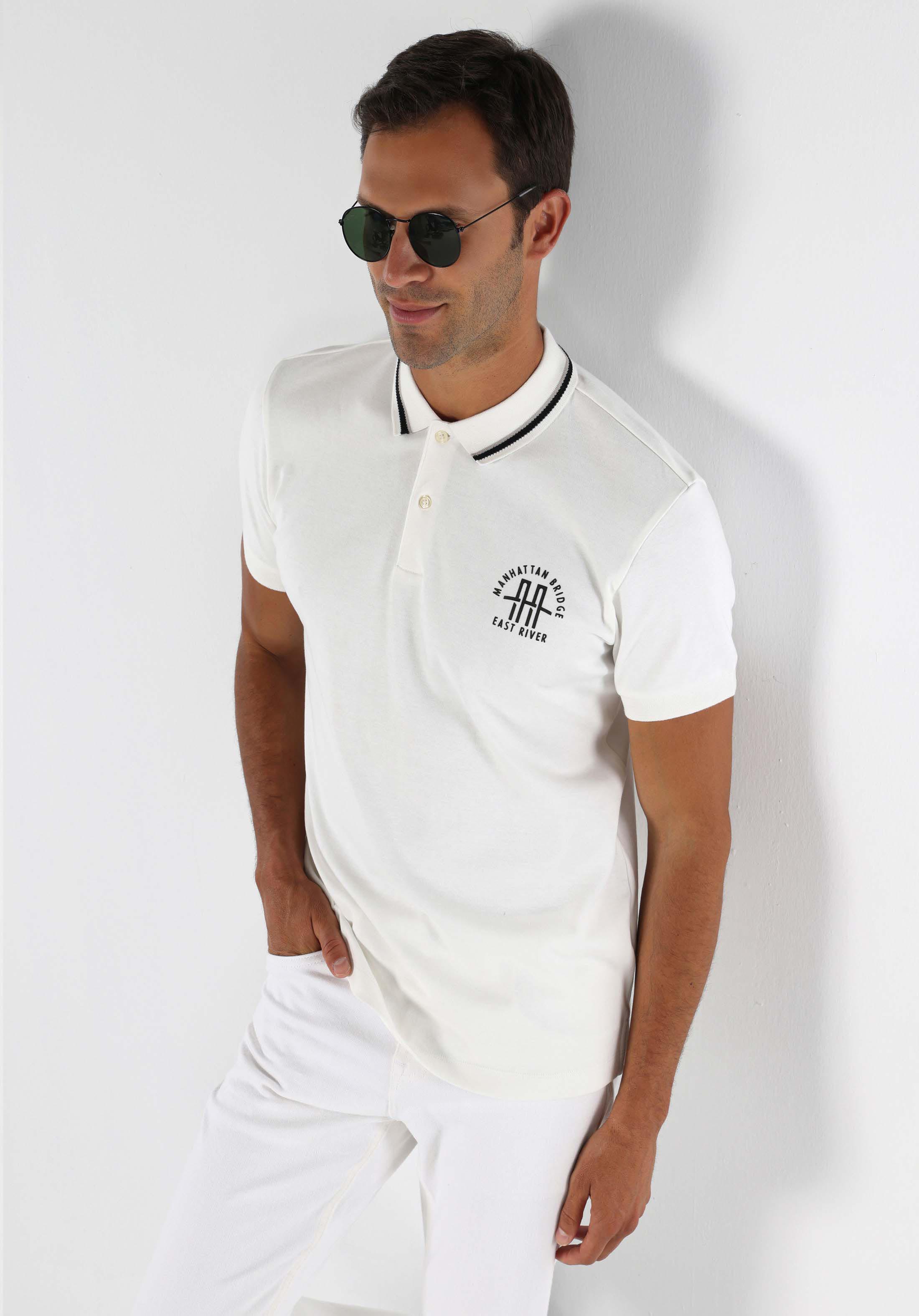 مقاس عادي مطبوع أبيض للرجال بياقة بولو بأكمام قصيرة تي شيرت Cl1063383