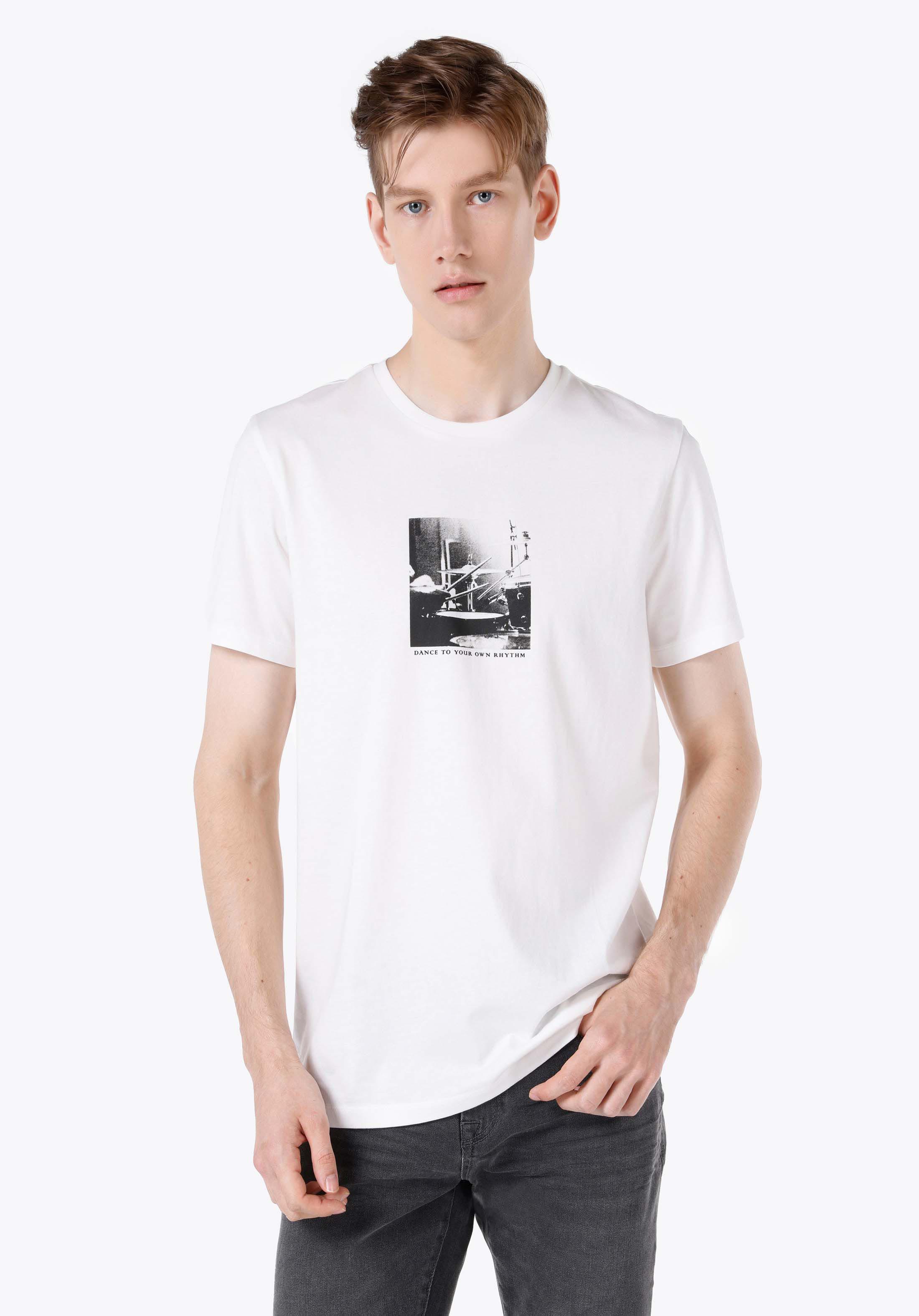 اعرض التفاصيل لـ   رقبة مستديرة مستقيم تي شيرت أبيض بأكمام قصيرة للرجال