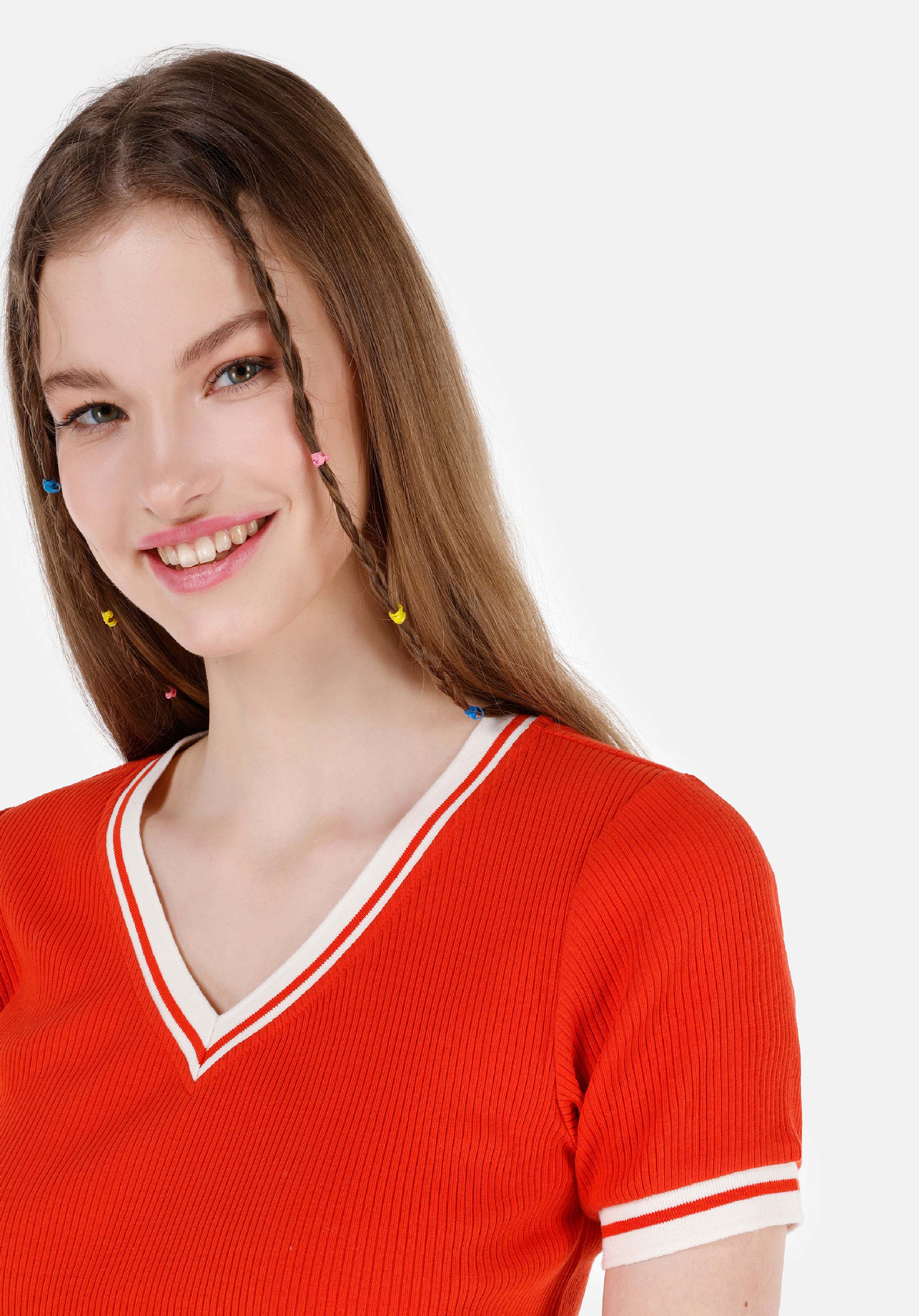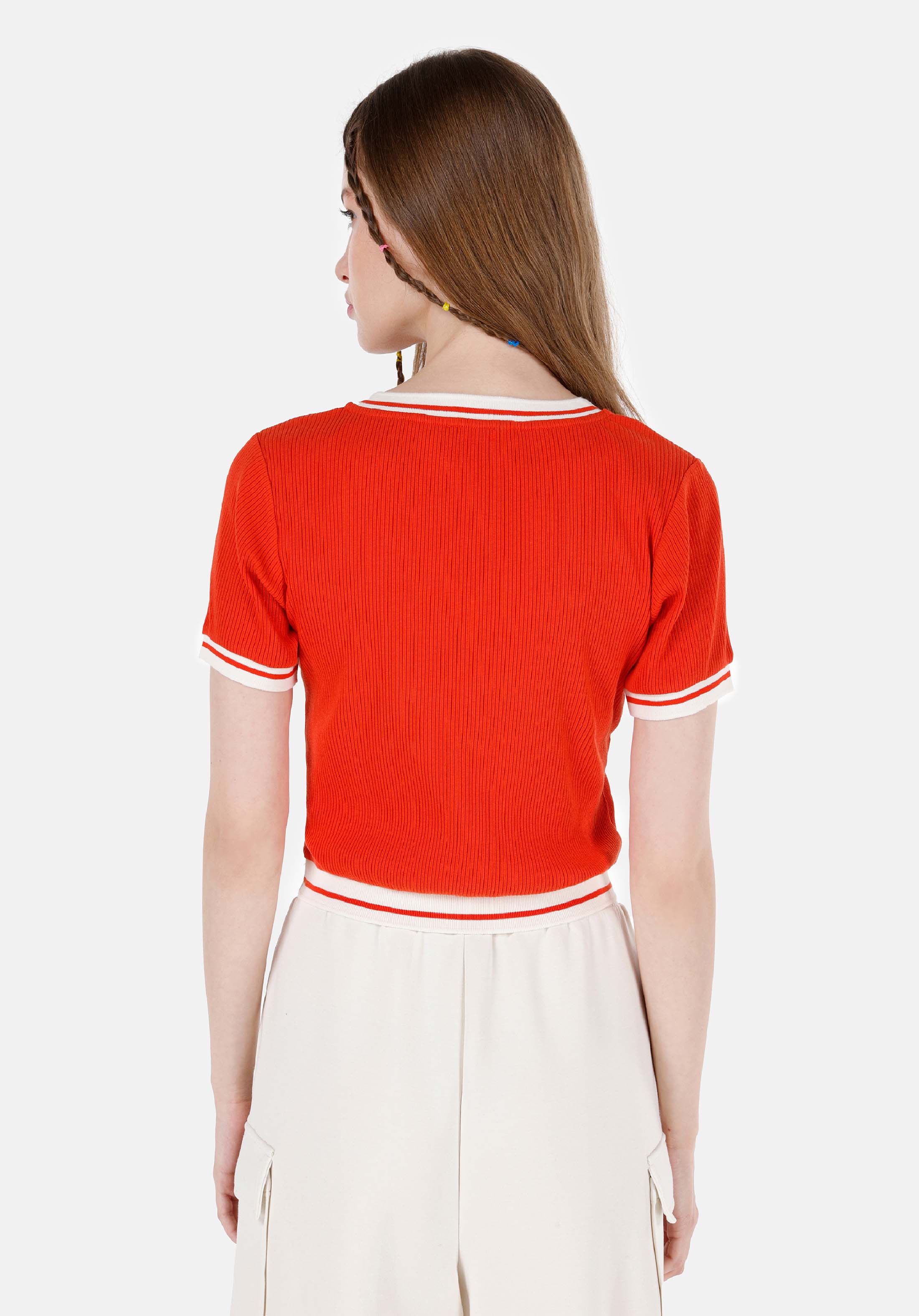 اعرض التفاصيل لـ أحمر للنساء تي شيرت بأكمام قصيرة