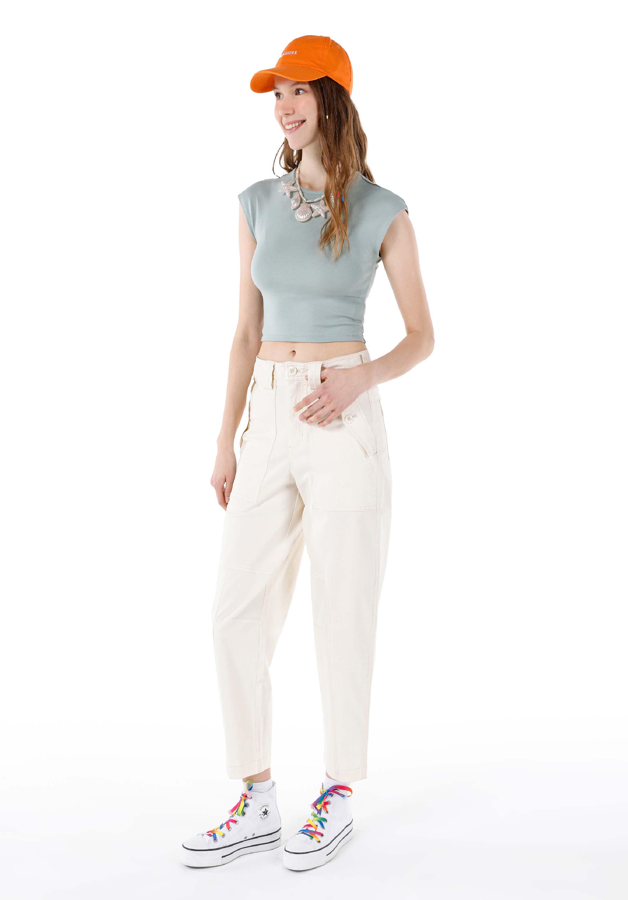 ضيق ياقة مستديرة مستقيم نسائي أخضر كم قصير تي شيرت