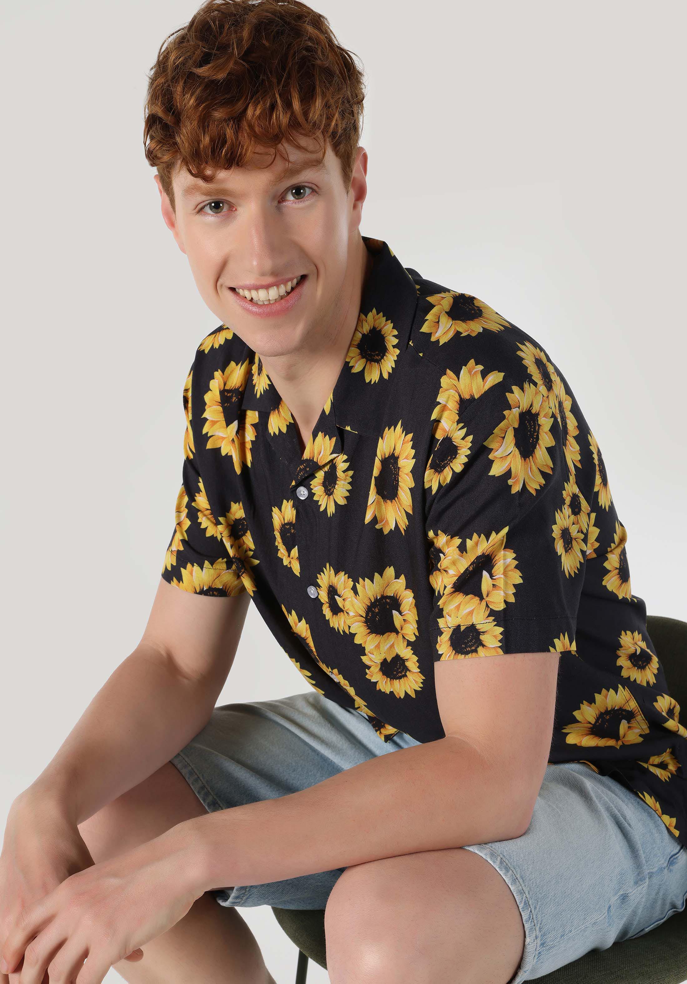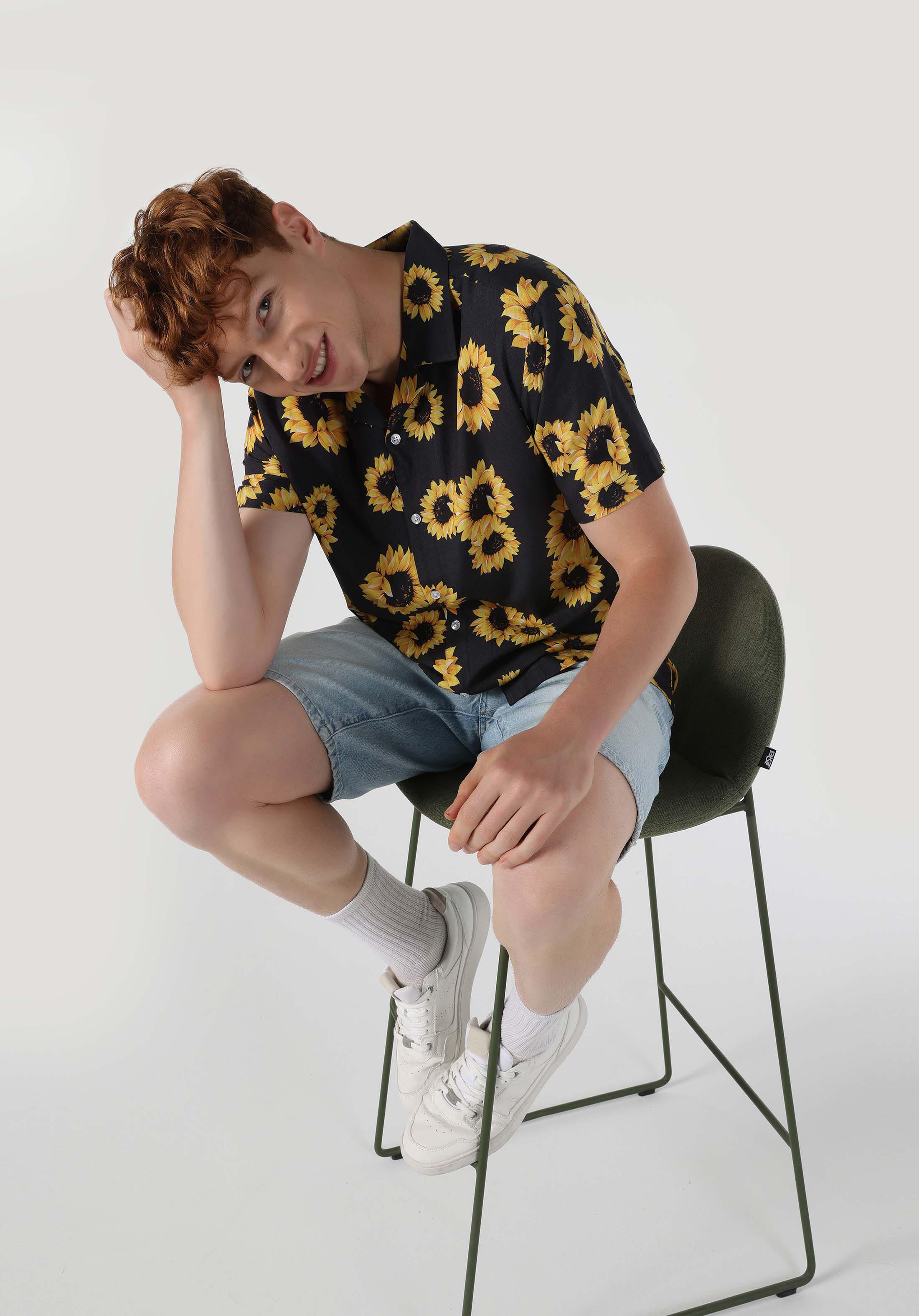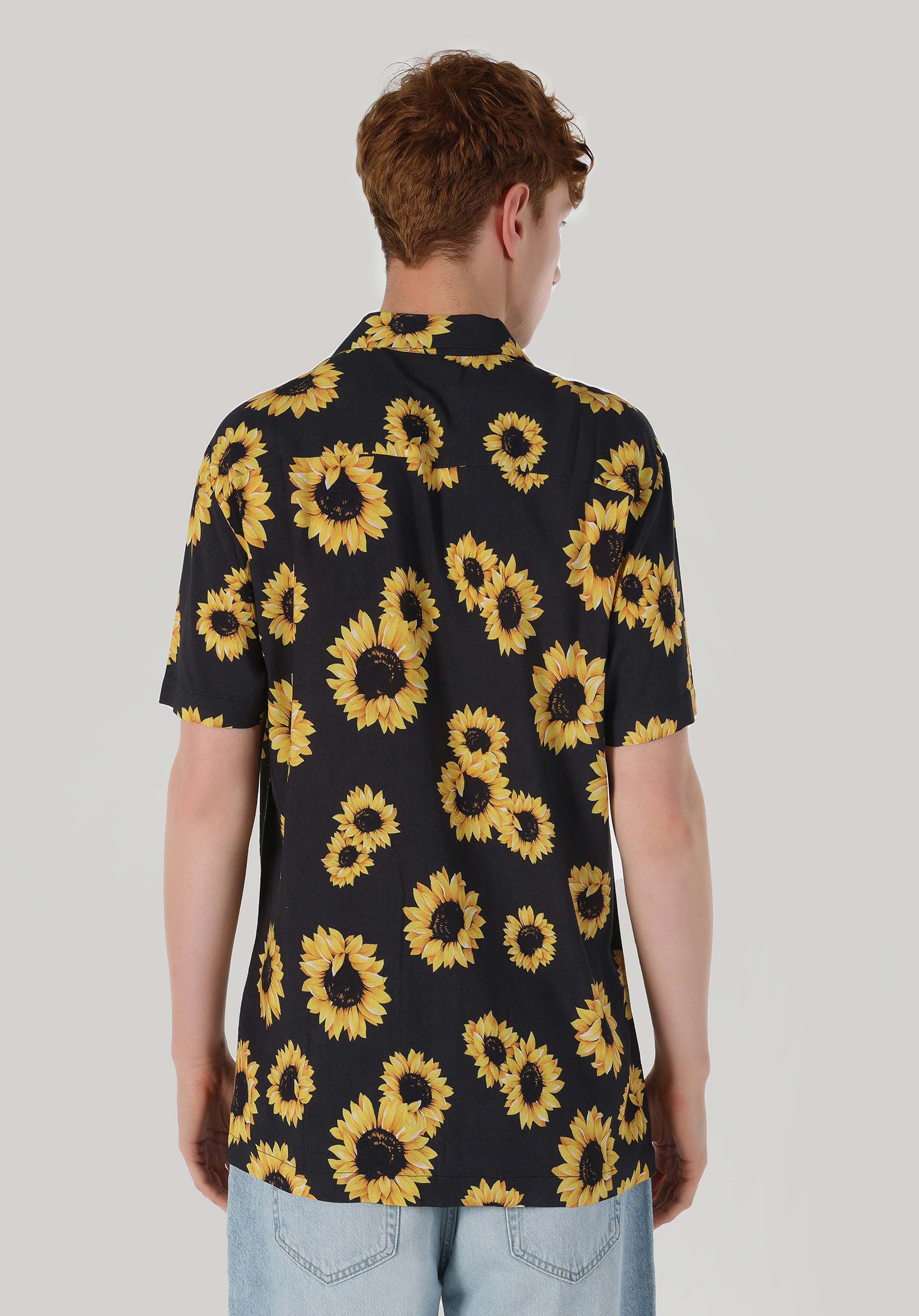 قميص عادي مناسب رقبة مطبوع رجالي أنثراسايت كم قصير قميص