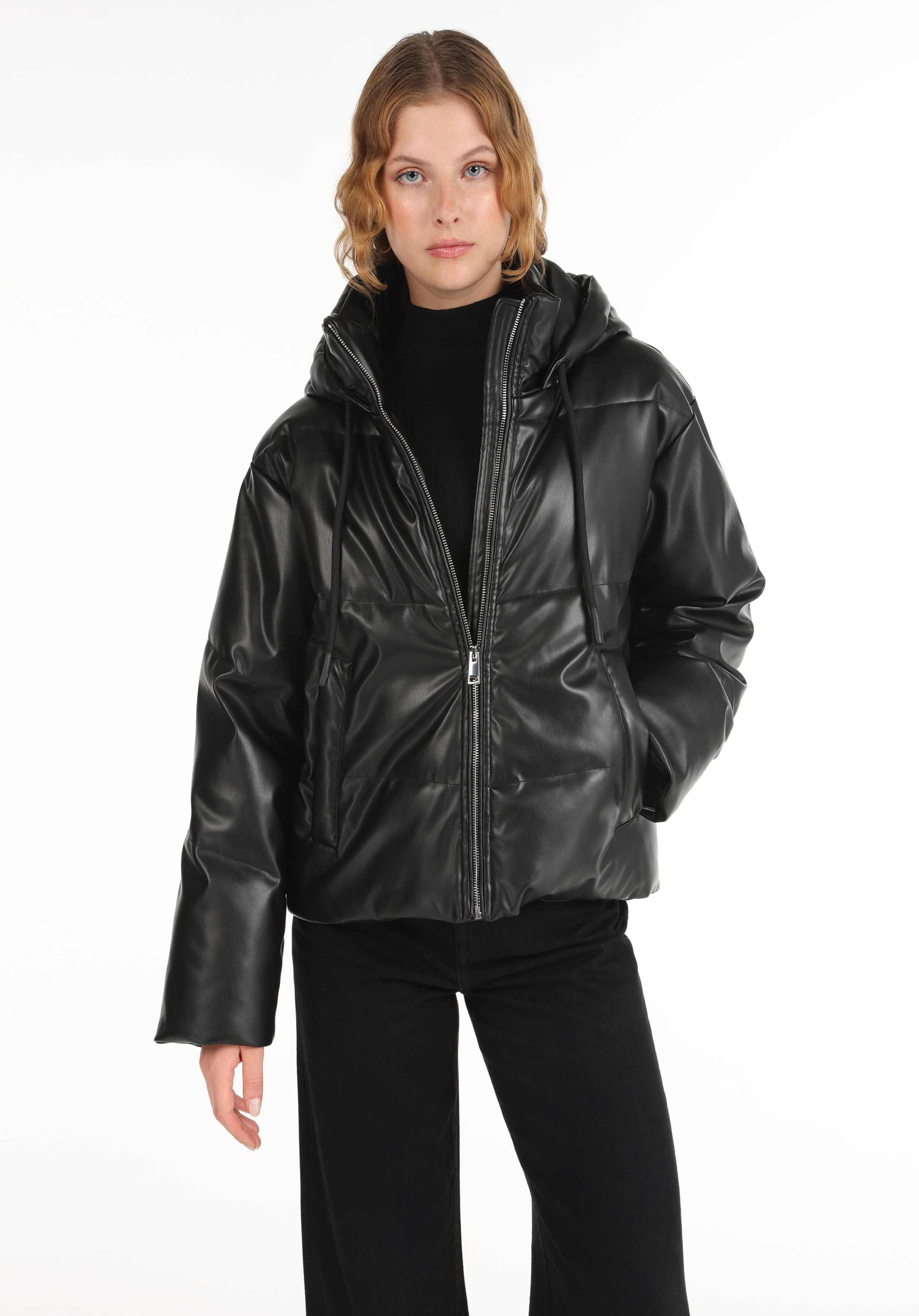 أسود للنساء جاكيت جلد