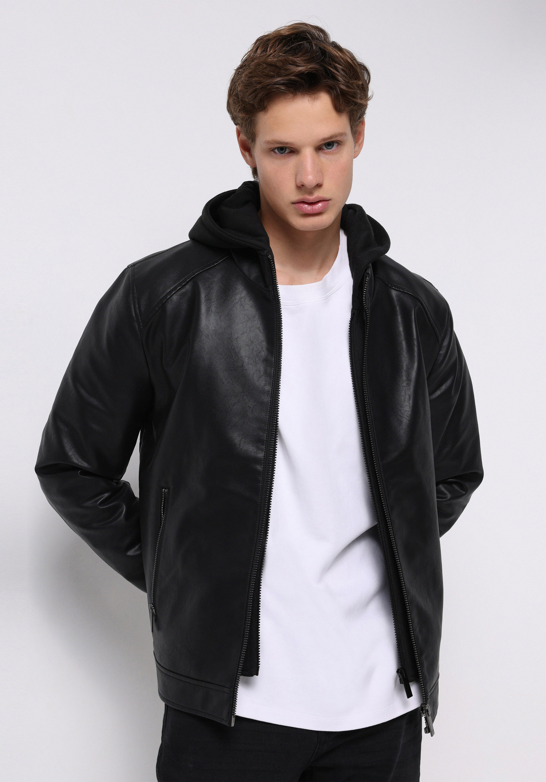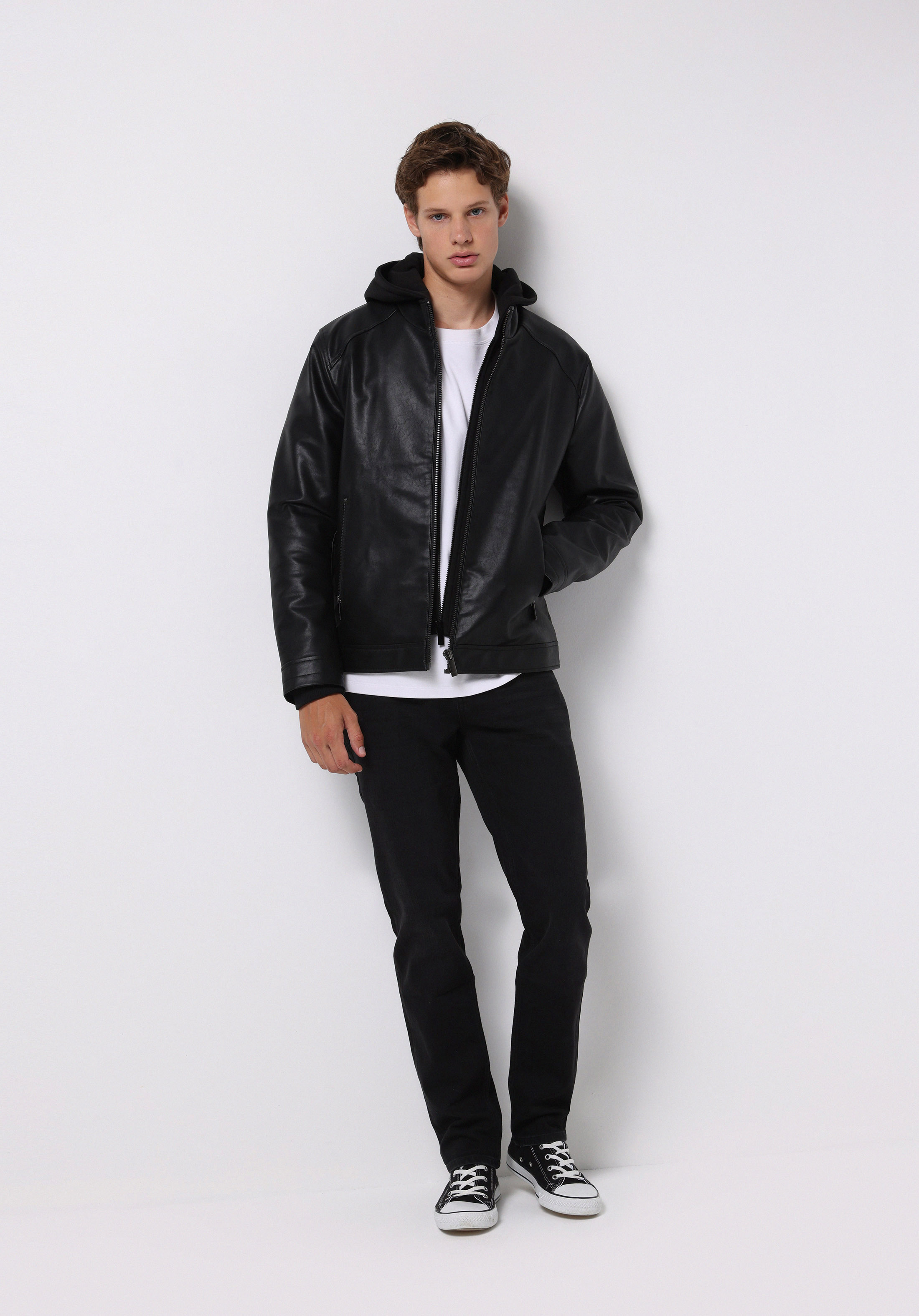 اعرض التفاصيل لـ أسود للرجال جاكيت جلد