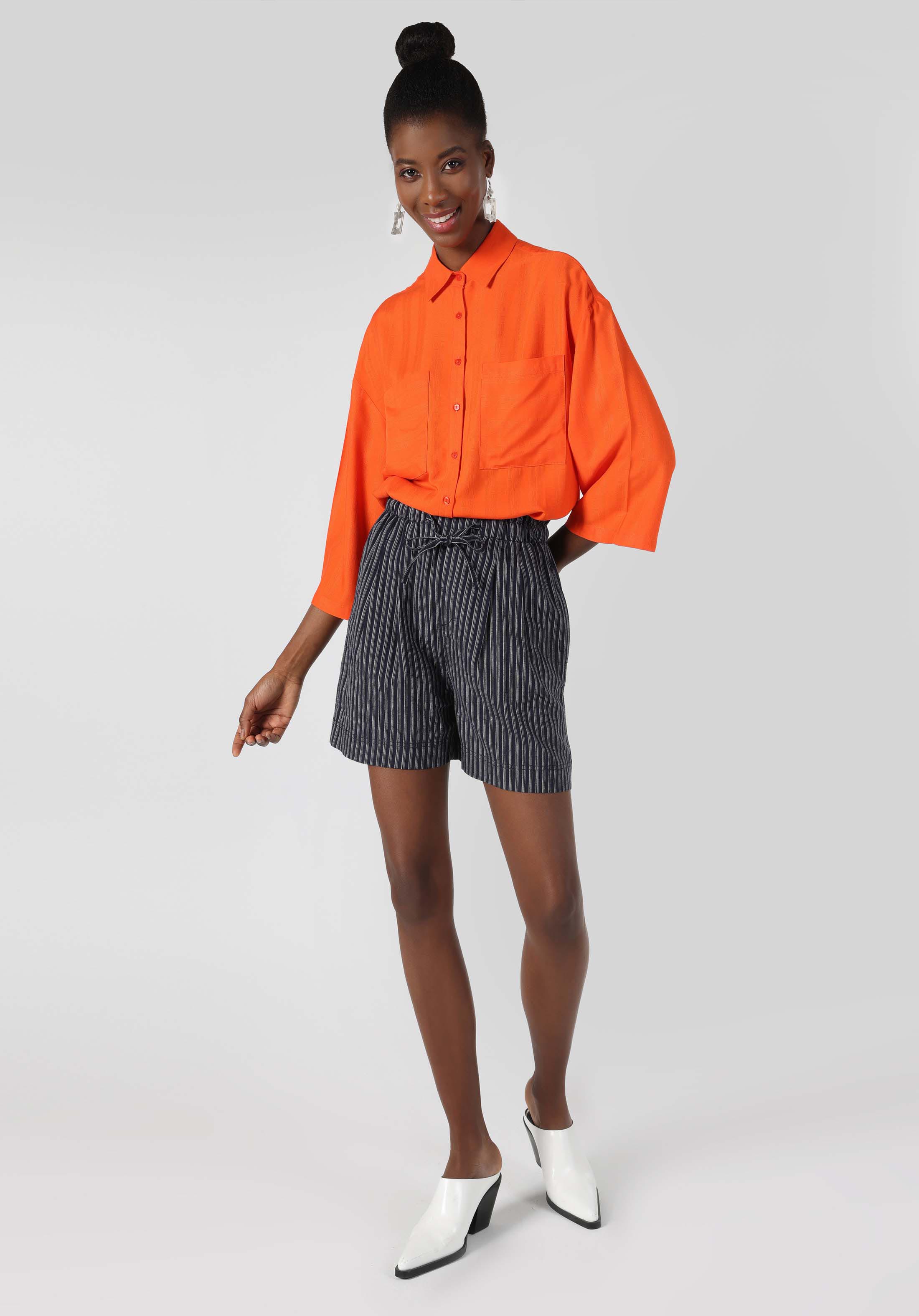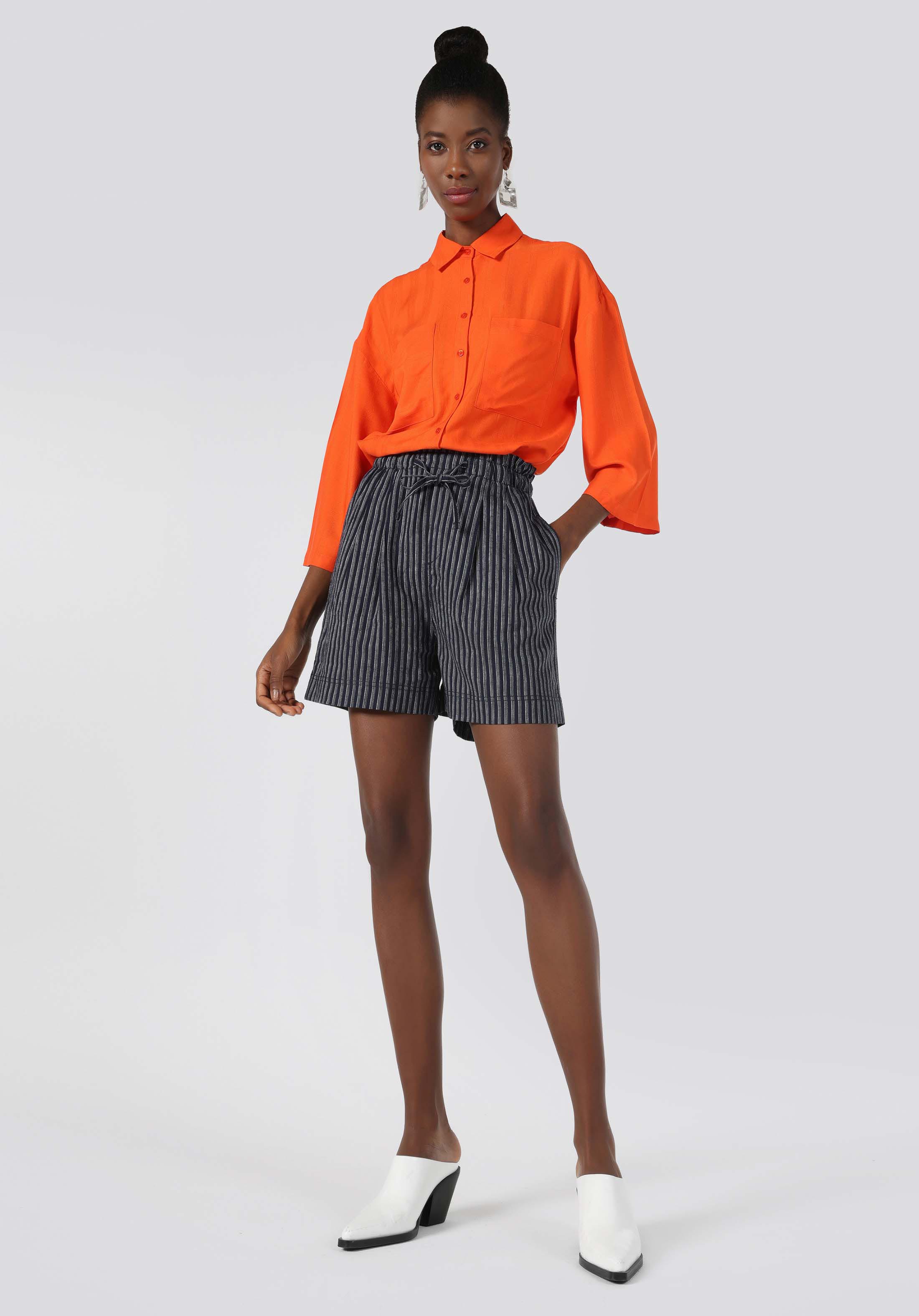 عادي قصة عالية الخصر نسائي شورت أزرق داكن