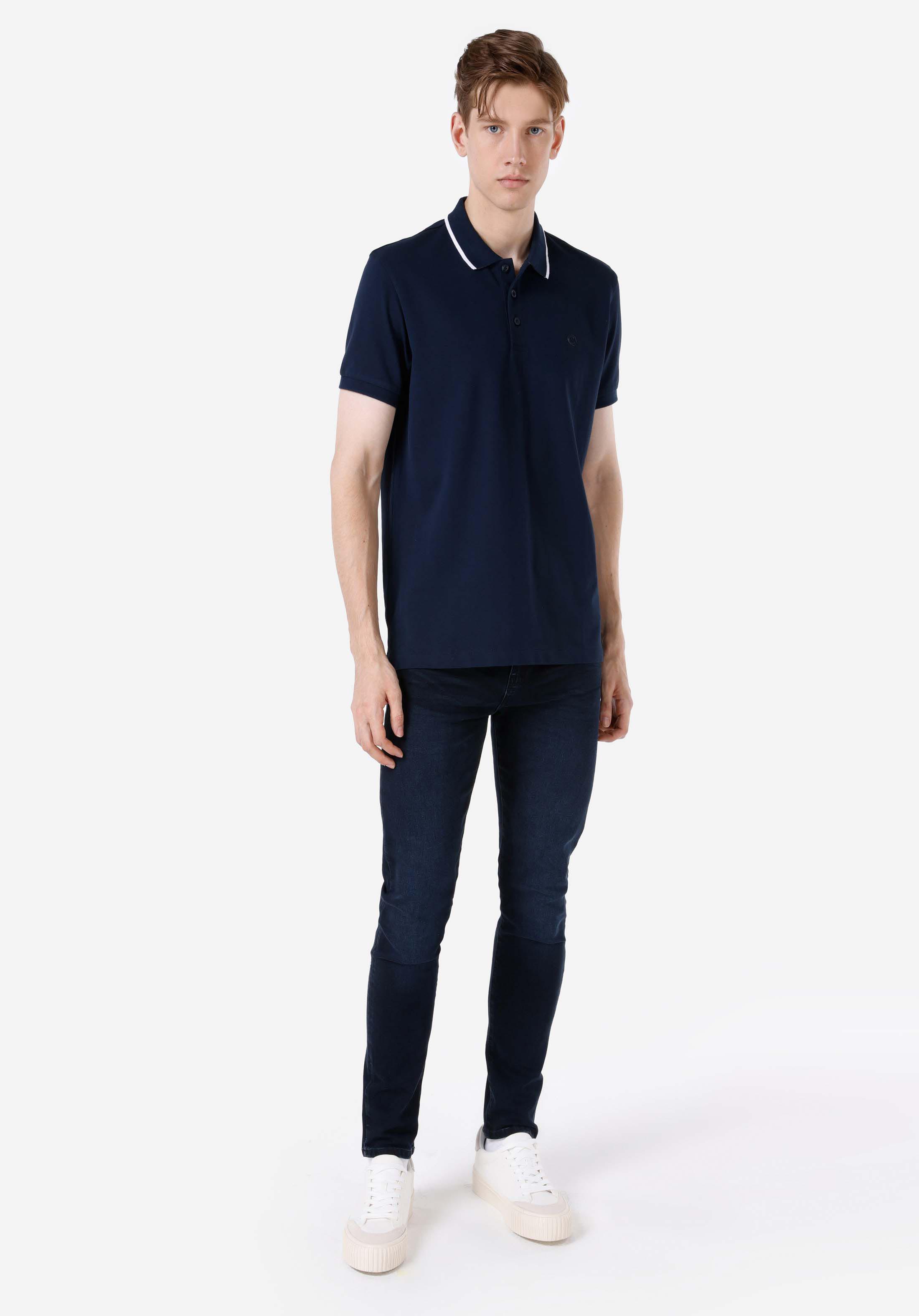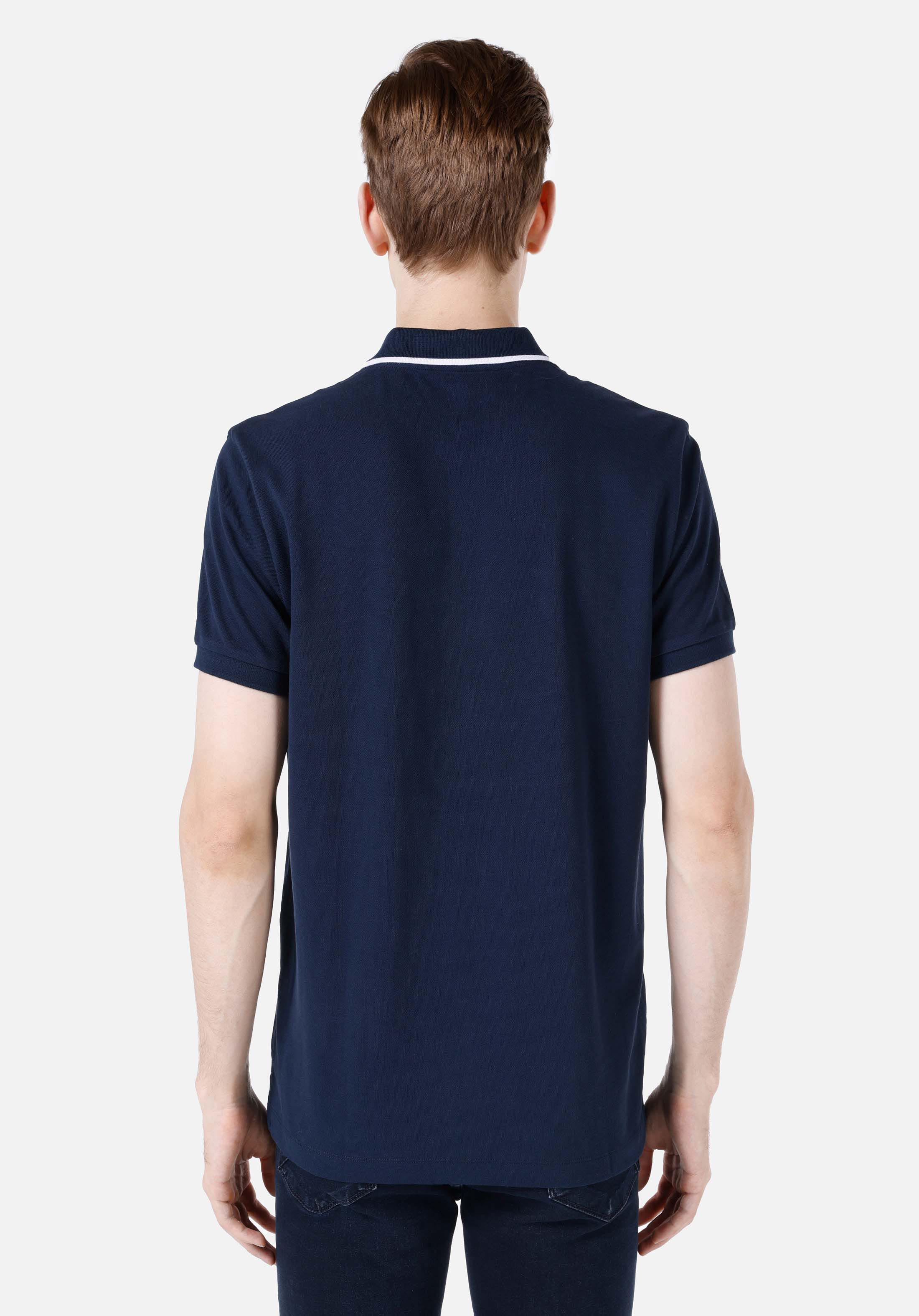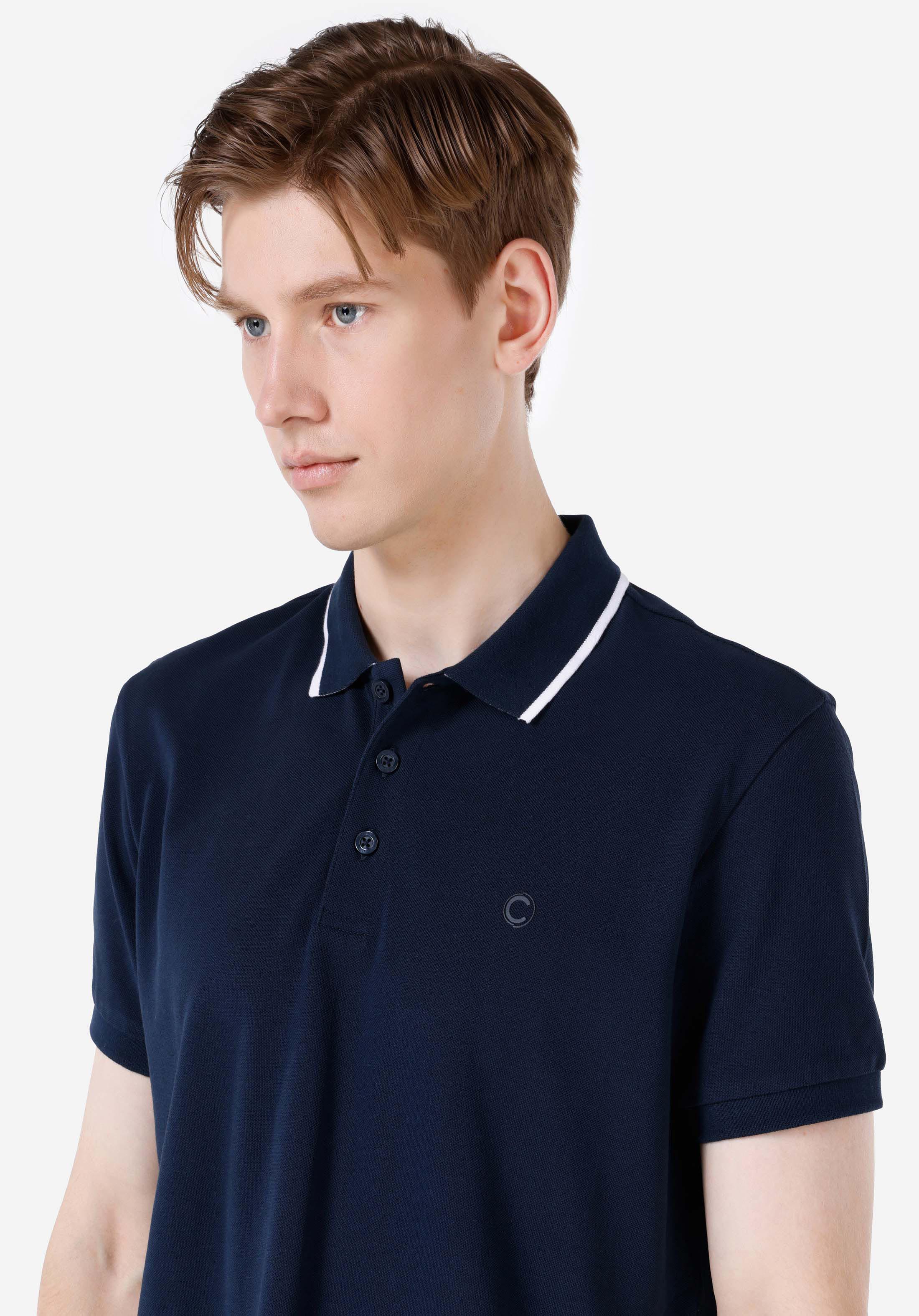 اعرض التفاصيل لـ أزرق بحري للرجال قميص بولو  كم قصير