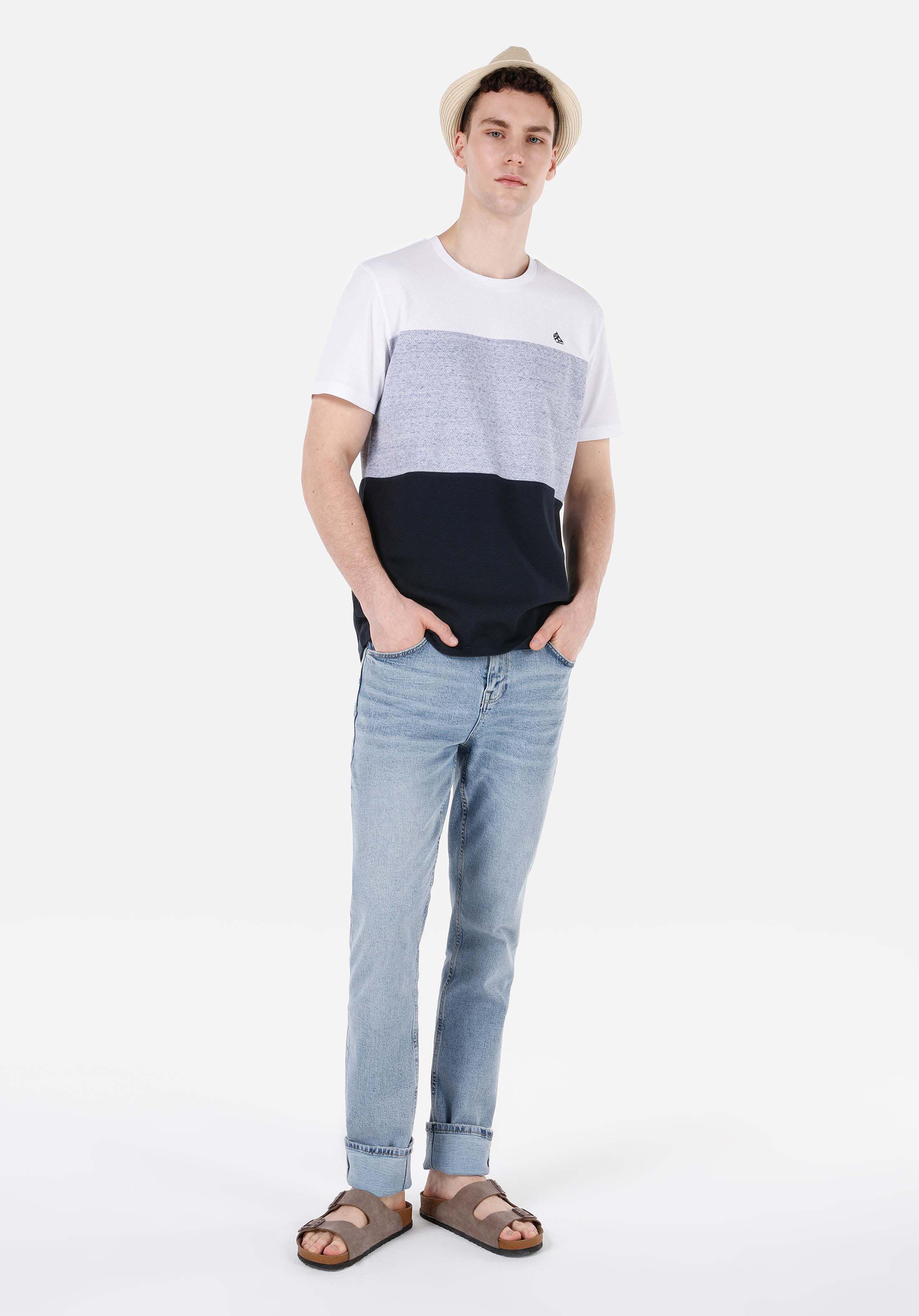 رقبة مستديرة مستقيم رجالي أزرق كحلي كم قصير تي شيرت