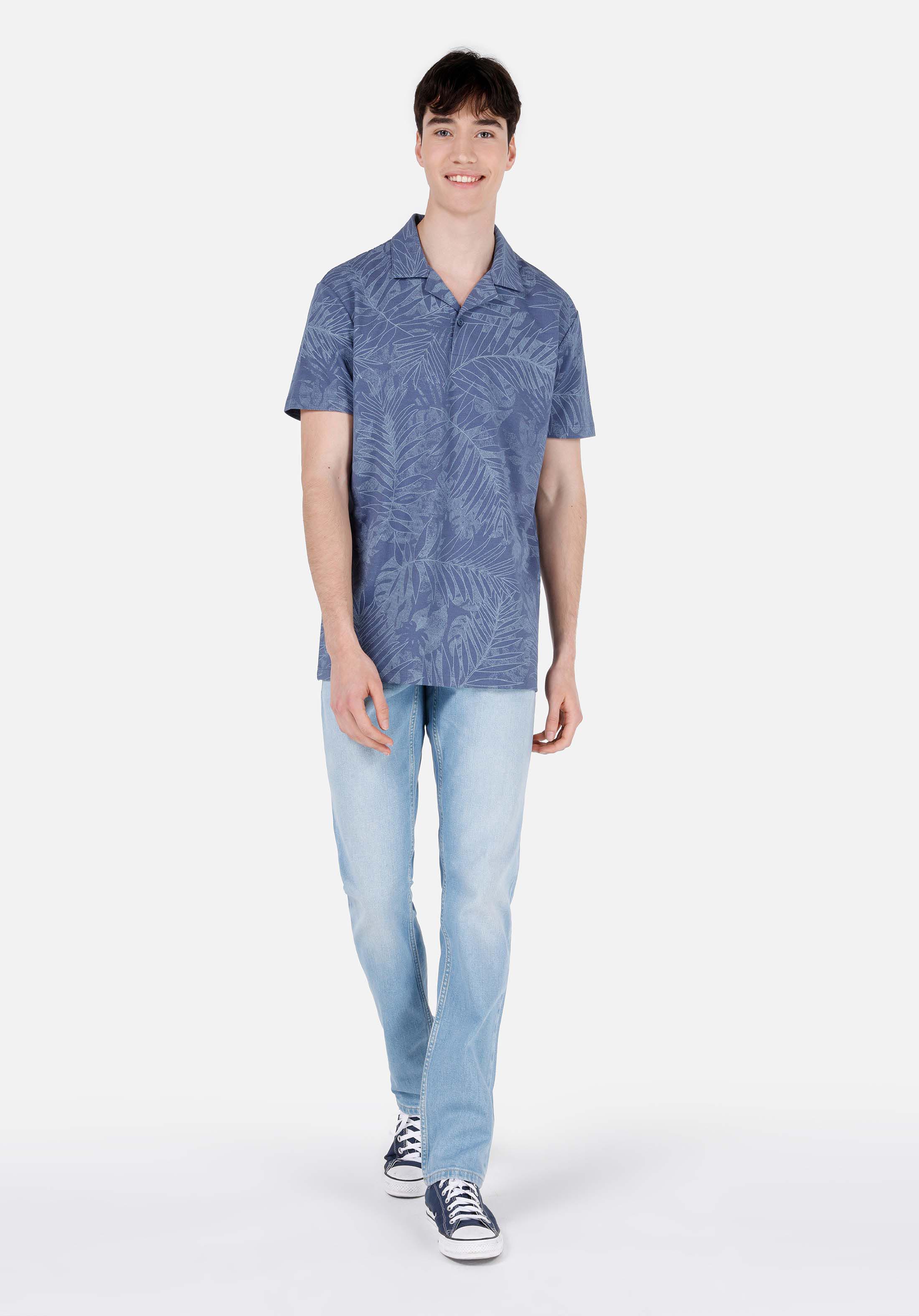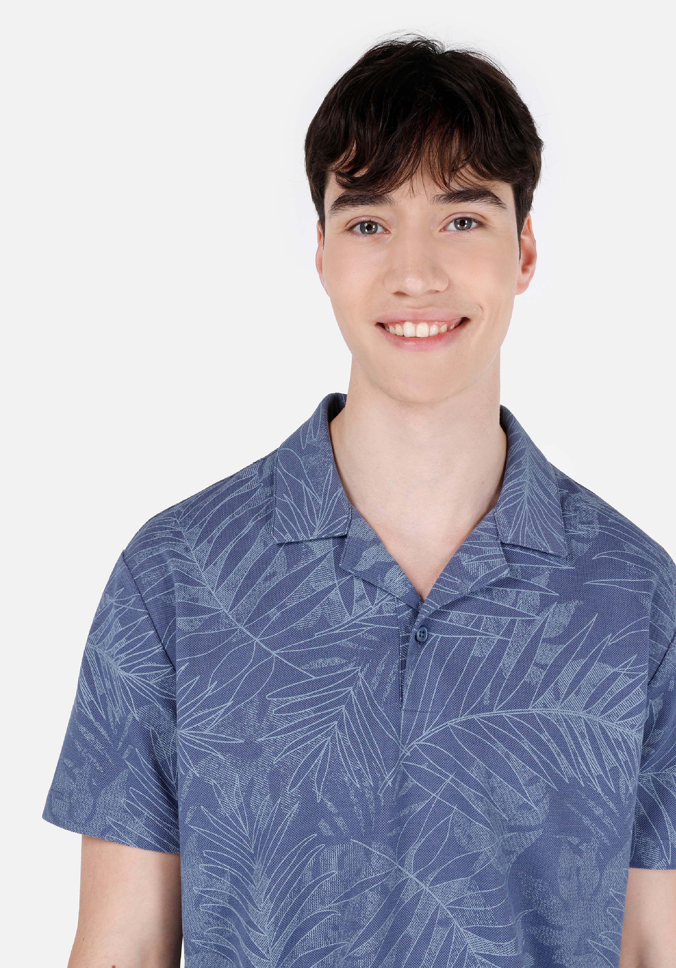 كومفورت فيت بولو طوق مطبوع رجالي أزرق كم قصير تي شيرت