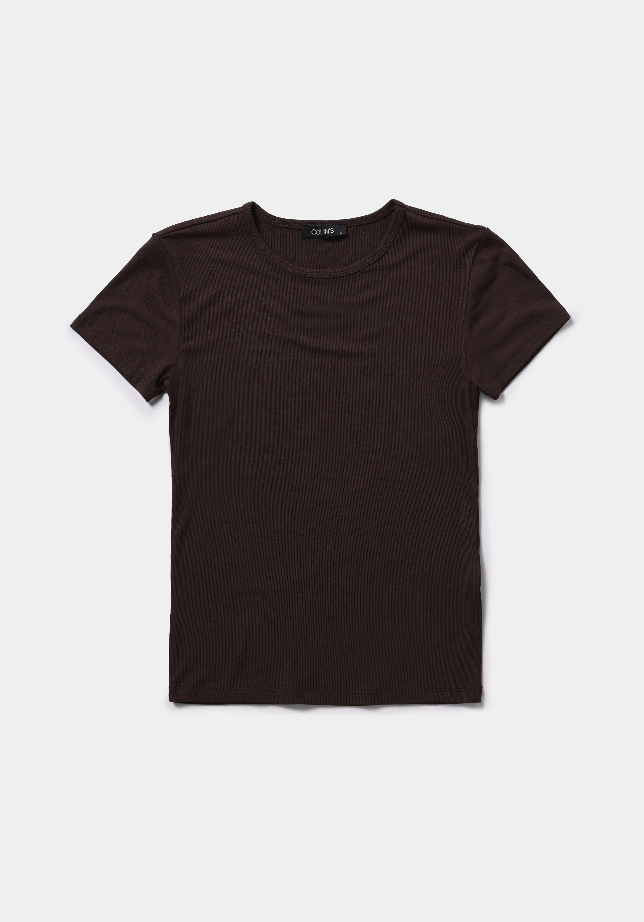 ضيق ياقة مستديرة مستقيم نسائي بني كم قصير تي شيرت