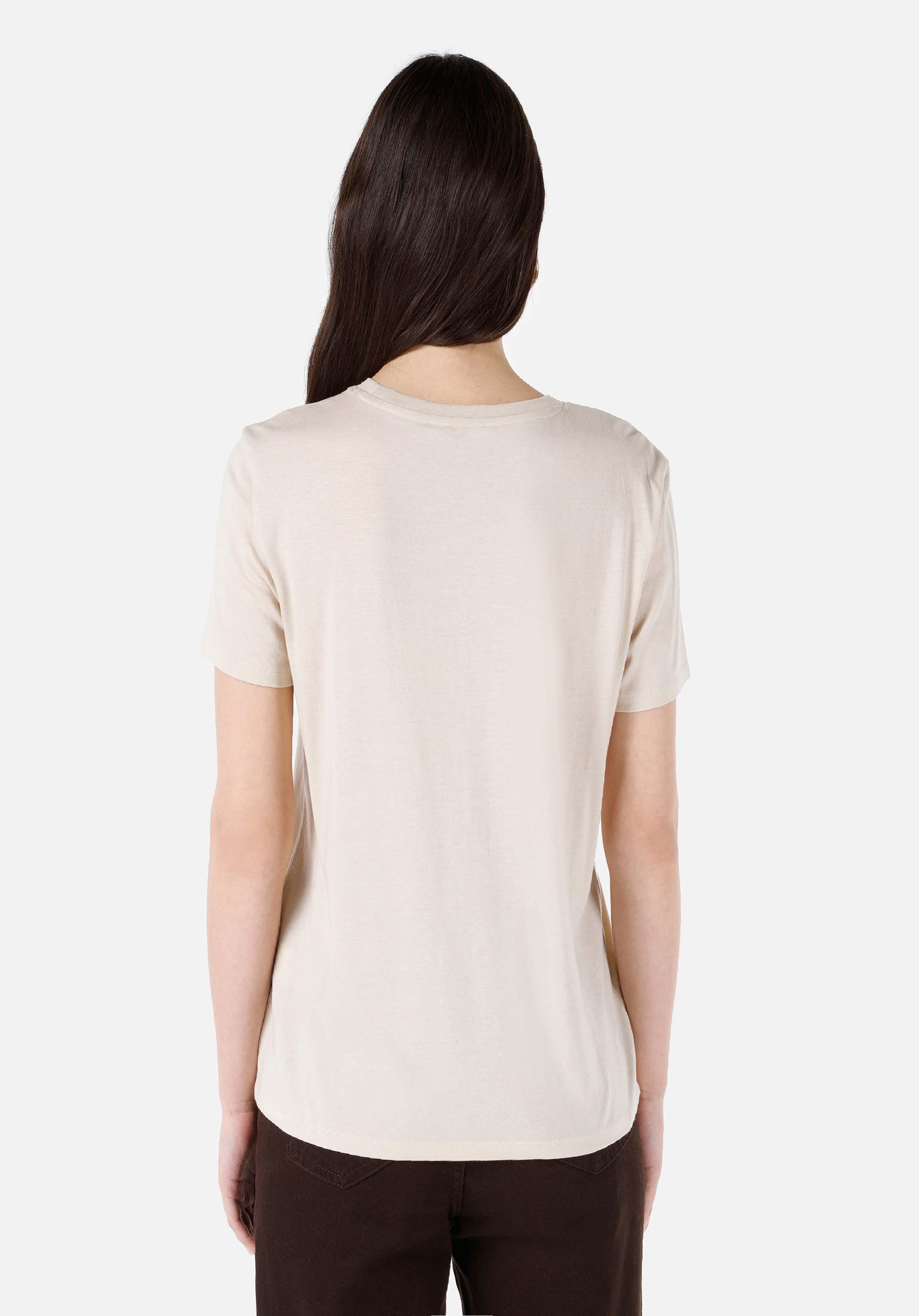 اعرض التفاصيل لـ   رقبة مستديرة مطبوعة نسائية بيج كم قصير تي شيرت