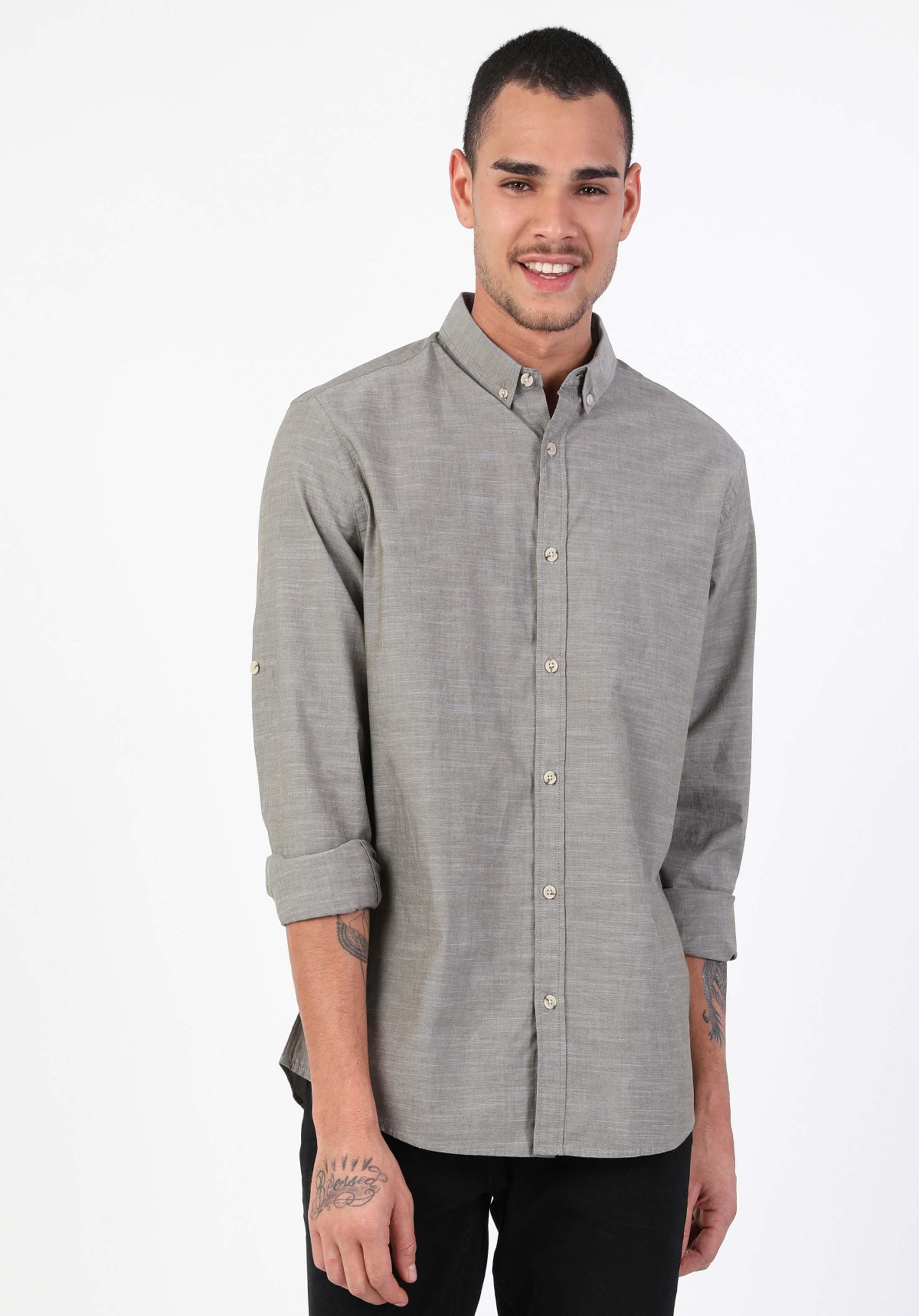 كاكي للرجال قميص كم طويل