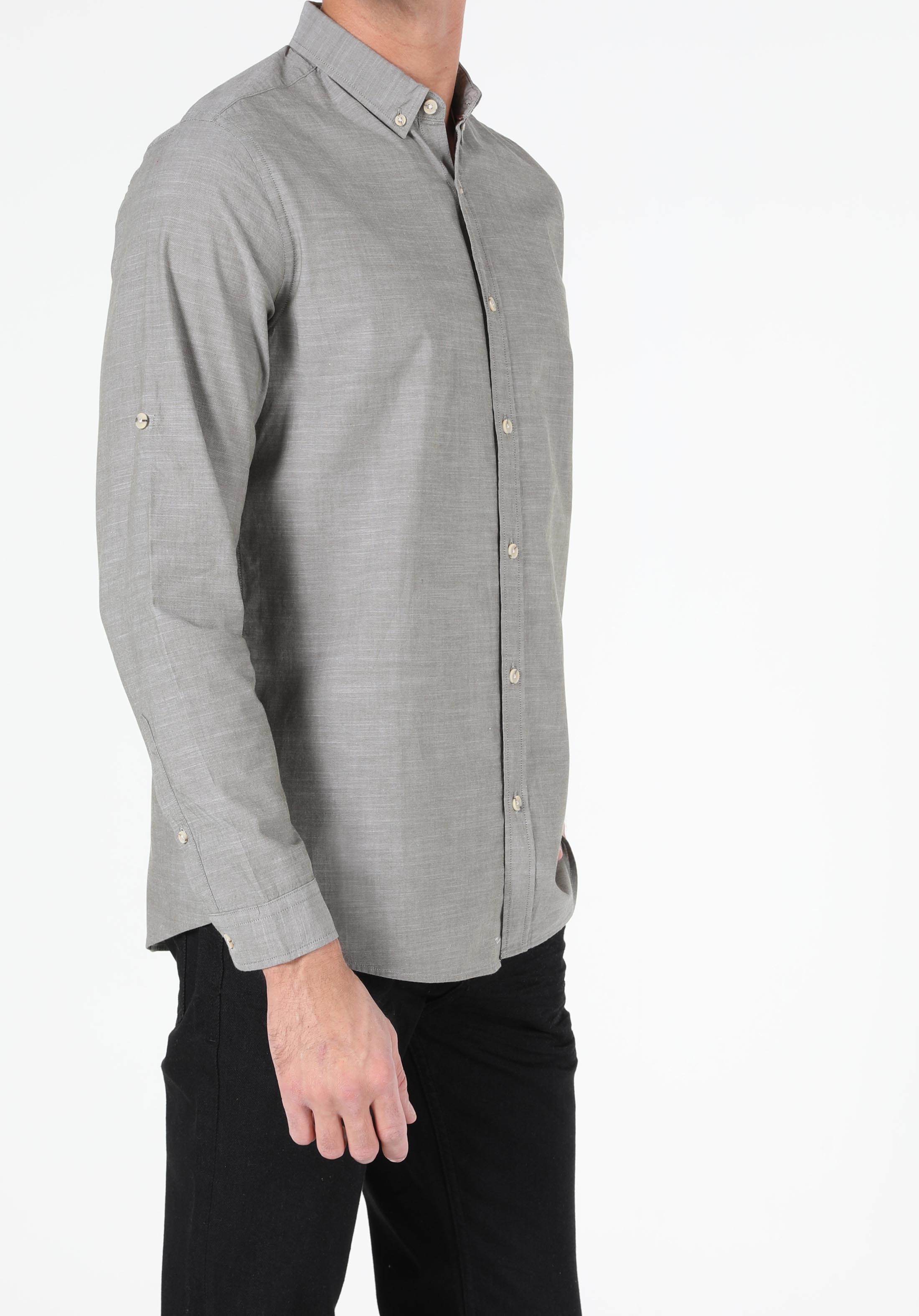 اعرض التفاصيل لـ كاكي للرجال قميص  كم طويل